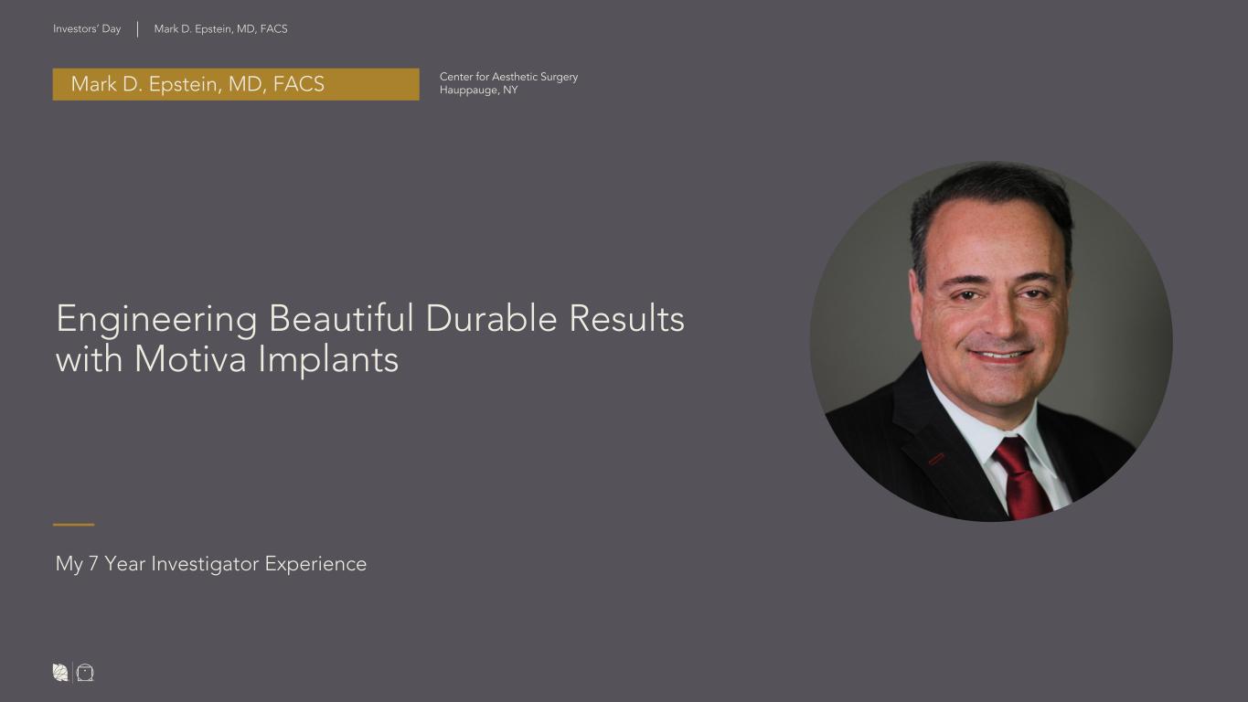 Engineering Beautiful Durable Results with Motiva Implants My 7 Year Investigator Experience Center for Aesthetic Surgery Hauppauge, NYMark D. Epstein, MD, FACS Mark D. Epstein, MD, FACSInvestors’ Day