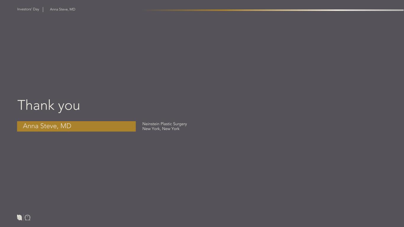 Thank you Neinstein Plastic Surgery New York, New York Anna Steve, MD Investors’ Day Anna Steve, MD