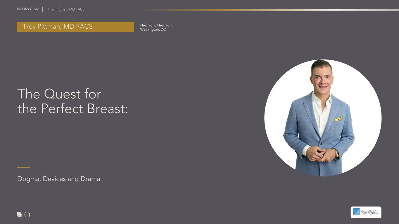 The Quest for the Perfect Breast: Dogma, Devices and Drama New York, New York Washington, DC Troy Pittman, MD FACS Troy Pittman, MD FACSInvestors’ Day