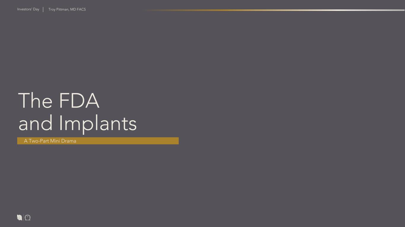 The FDA and Implants A Two-Part Mini Drama Investors’ Day Troy Pittman, MD FACS