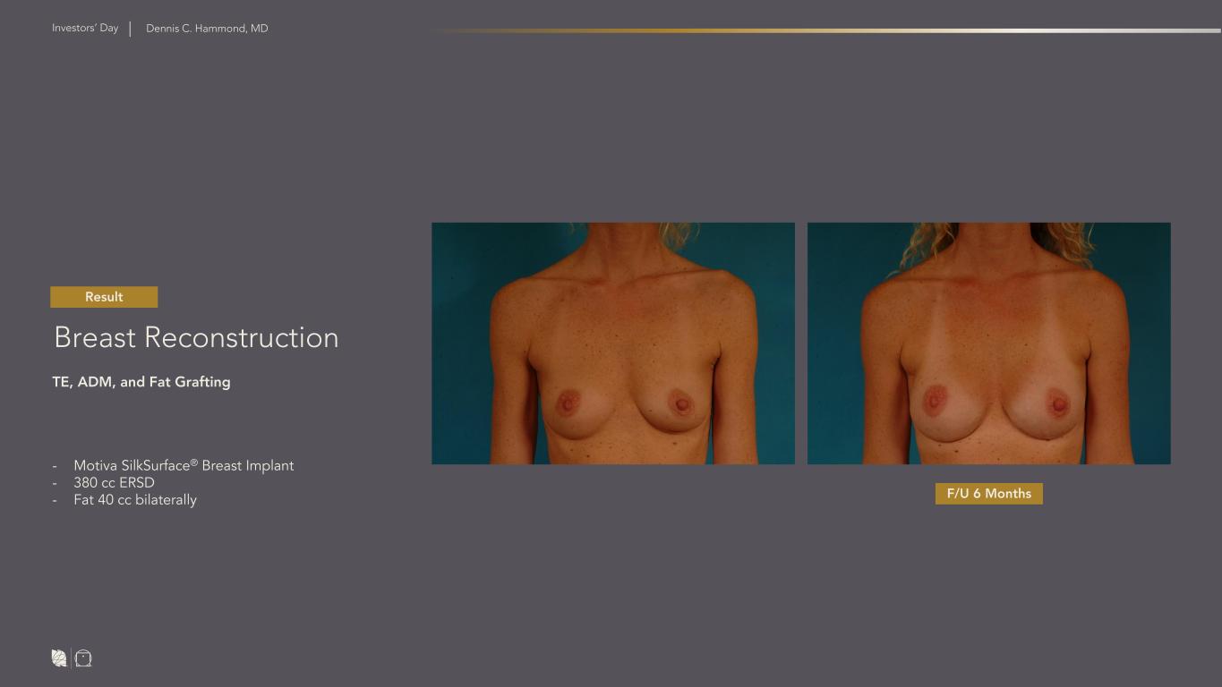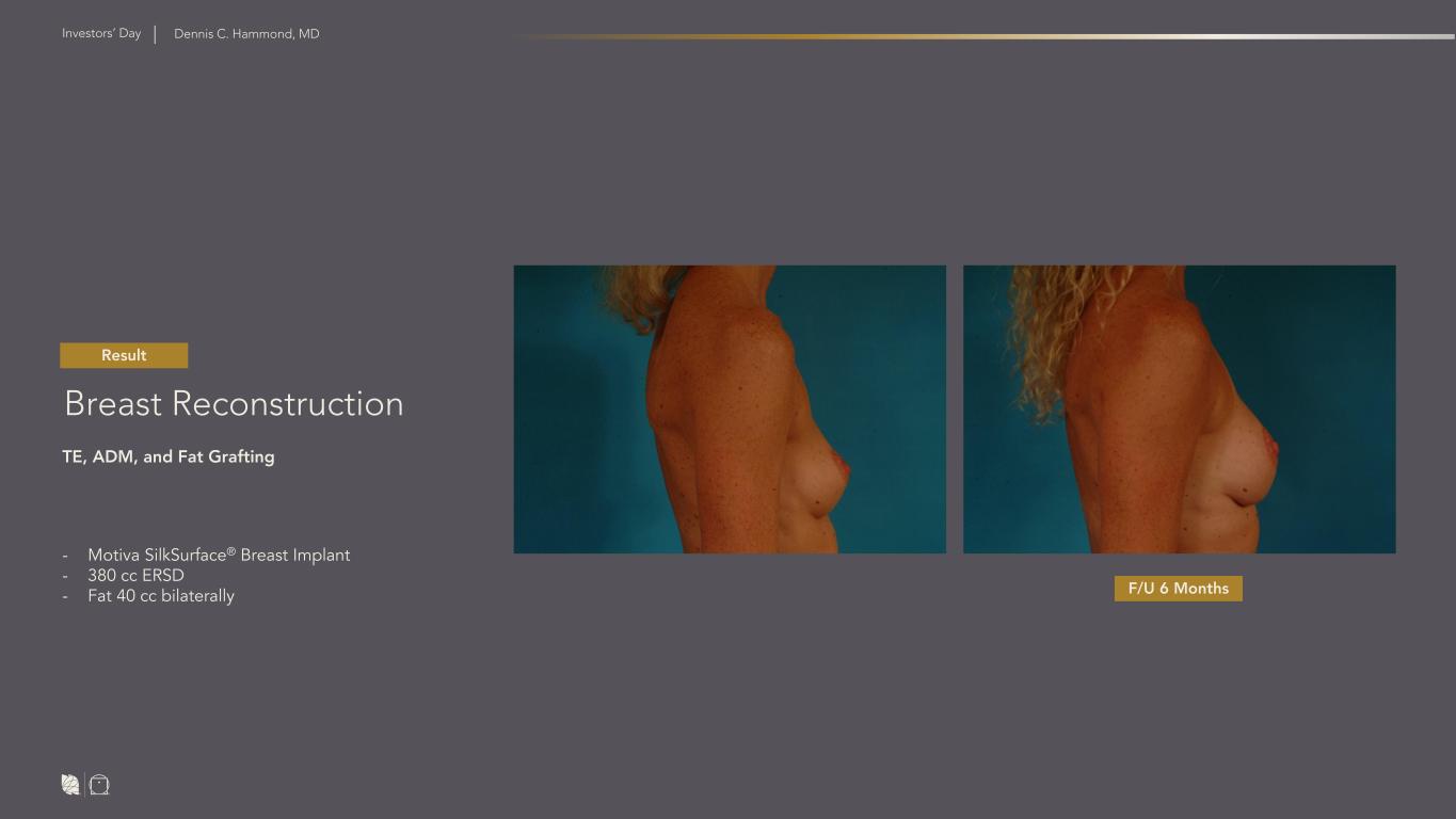 TE, ADM, and Fat Grafting Breast Reconstruction Result - Motiva SilkSurface® Breast Implant - 380 cc ERSD - Fat 40 cc bilaterally F/U 6 Months Investors’ Day Dennis C. Hammond, MD