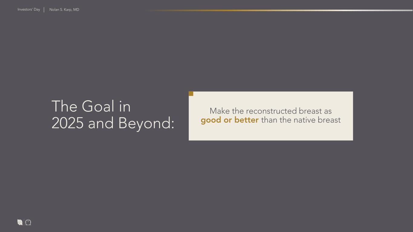 The Goal in 2025 and Beyond: Make the reconstructed breast as good or better than the native breast Investors’ Day Nolan S. Karp, MD