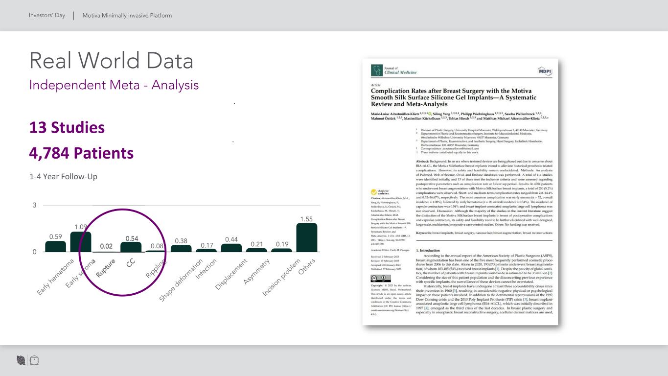 1-4 Year Follow-Up 13 Studies 4,784 Patients Motiva Minimally Invasive PlatformInvestors’ Day Real World Data Independent Meta - Analysis
