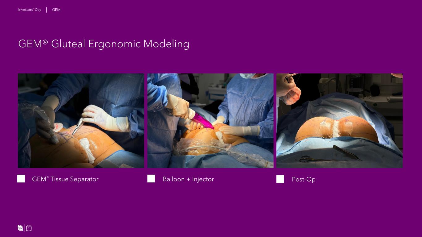 GEM® Gluteal Ergonomic Modeling GEM® Tissue Separator Balloon + Injector Post-Op Investors’ Day GEM