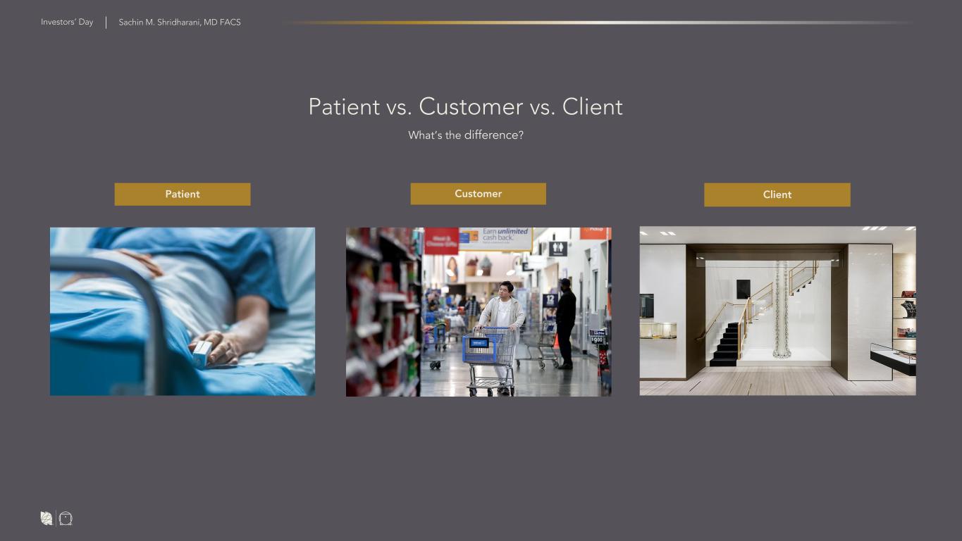 Patient vs. Customer vs. Client What’s the difference? Patient Customer Client Sachin M. Shridharani, MD FACSInvestors’ Day