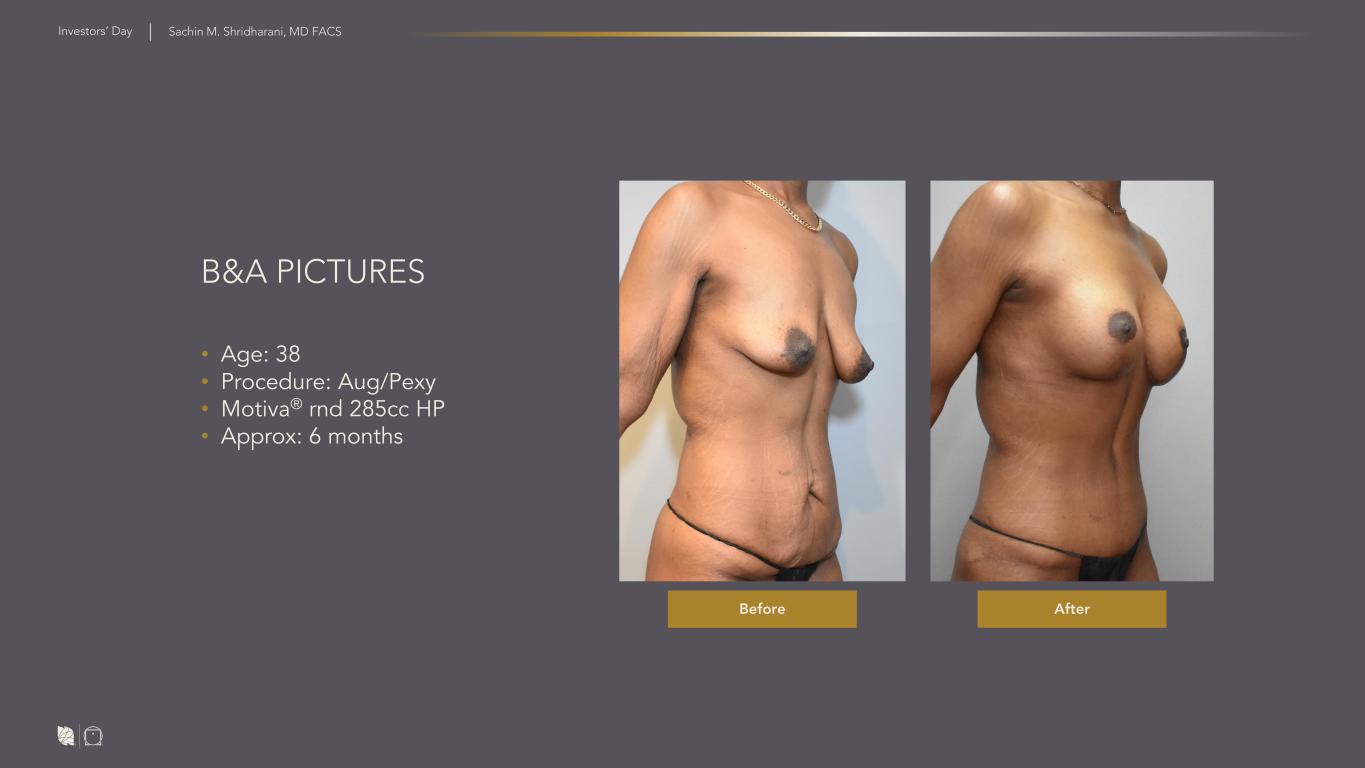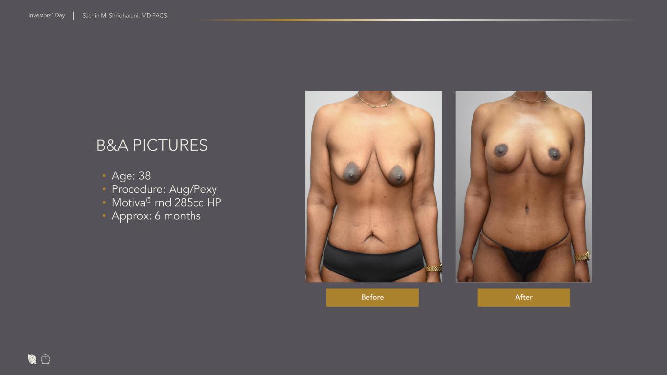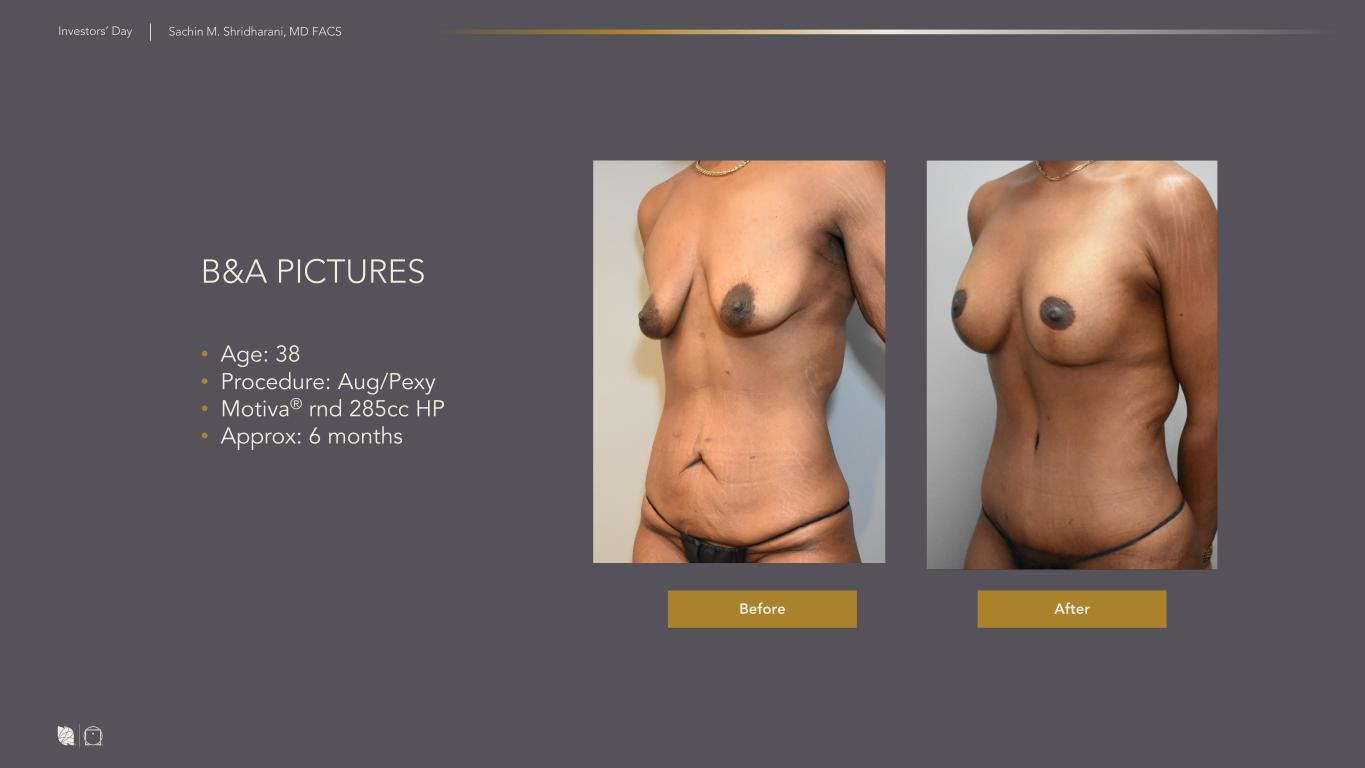 B&A PICTURES • Age: 38 • Procedure: Aug/Pexy • Motiva® rnd 285cc HP • Approx: 6 months Before After Sachin M. Shridharani, MD FACSInvestors’ Day