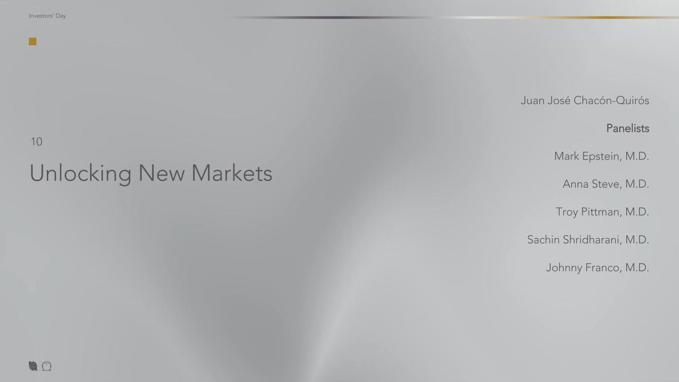 Investors’ Day Investors’ Day Unlocking New Markets 10 Juan José Chacón-Quirós Panelists Mark Epstein, M.D. Anna Steve, M.D. Troy Pittman, M.D. Sachin Shridharani, M.D. Johnny Franco, M.D.