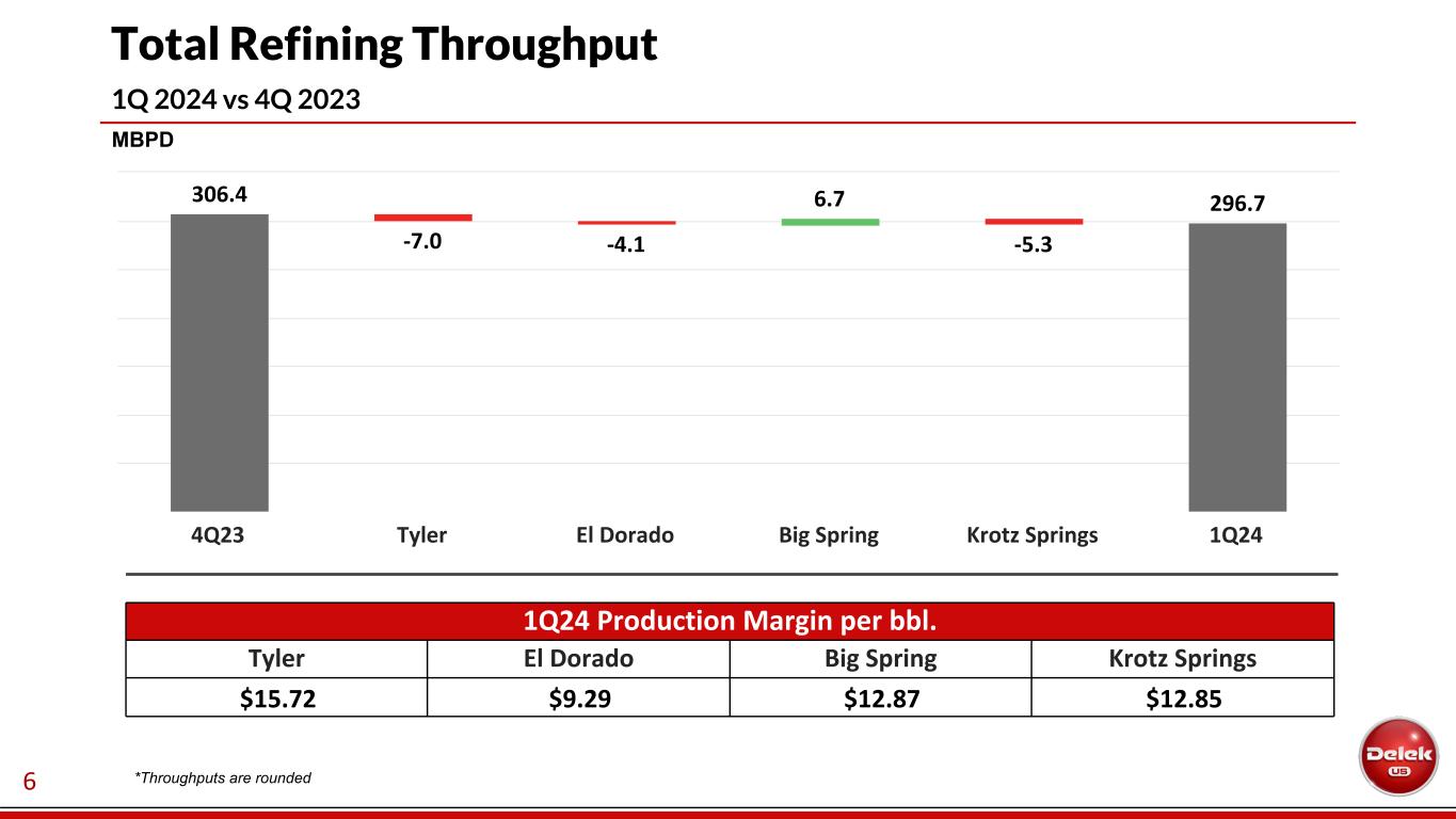 “We are proud of our operational excellence progress that reflects favorable EHS performance trends,” said Avigal Soreq, President and Chief Executive Officer of Delek US. “We navigated regional demand headwinds early in the quarter and delivered solid operational performance. This resulted in a quarter that was in line with our guidance.”