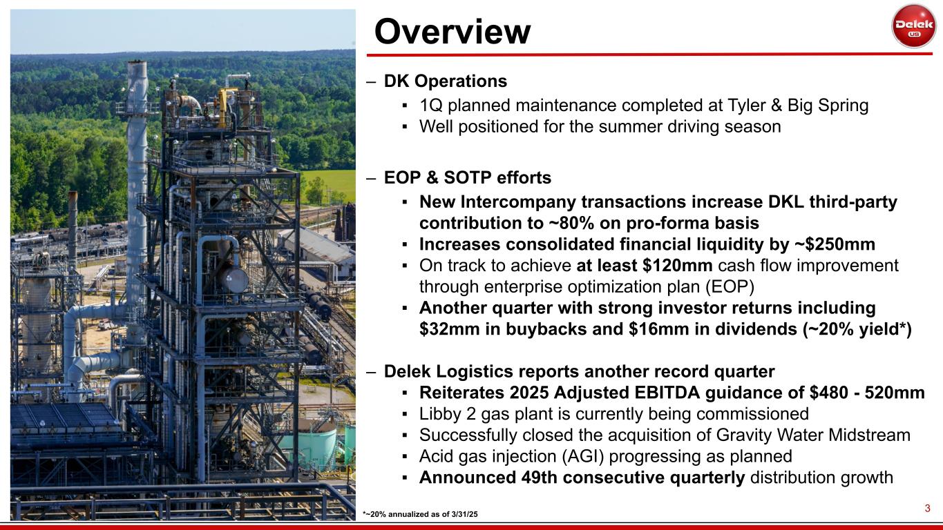 -25年第1四半期、DKはSOTP、中流部門の非連結化およびEOPの主要目標を引き続き推進した。