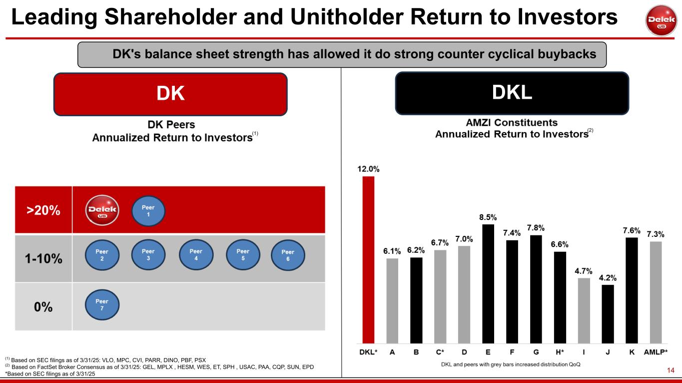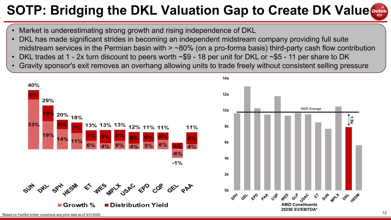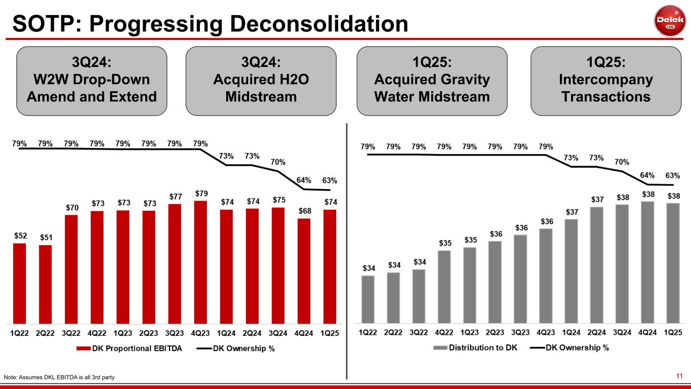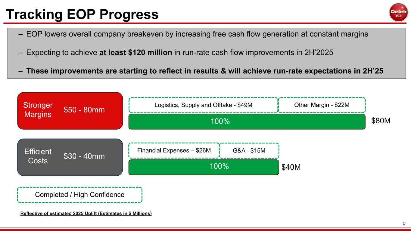 「デレックUSの社長兼最高経営責任者(CEO)であるアビガル・ソレックは、「厳しい市場環境が続いているにもかかわらず、サム・オブ・ザ・パーツの目標を達成し、会社全体の収益性を向上させることができました。「EOPの進展に興奮しており、2025年下期までに少なくとも1億2,000万ドルのキャッシュフロー改善を見込んでいます。新しい企業間契約はDKLとの経済的分離をさらに進め、2億5,000万ドルを超える流動性を確保するものです。また、中流部門の非連結化を完了させるという当社の最重要戦略目標に向けた一歩でもある。プロフォーマ・ベースでは、これらの契約後、DKLのキャッシュフローの約80%が第三者からの供給となる。"