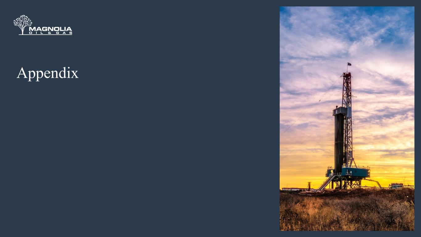 -マグノリアは第3四半期中、自社株買いと配当の組み合わせにより、フリーキャッシュフロー(1)の60%にあたる8,030万ドル(3)を株主に還元した。株主への大幅な現金還元を含め、マグノリアは貸借対照表に2億8,050万ドルの現金と4億5,000万ドルの未使用のリボルビング・クレジット枠を残して第3四半期を終了した。