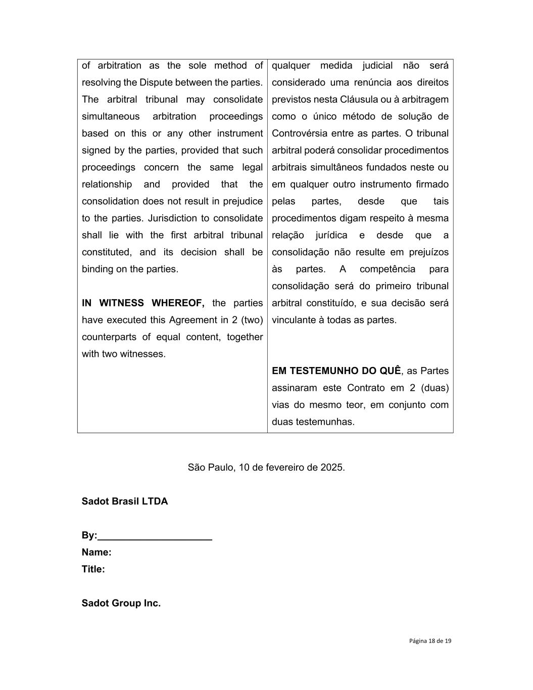 This Executive Employment Agreement (the “Agreement”) is made and entered into as of February 10, 2025 by and between SADOT GROUP INC., a Nevada corporation (the “Company”), and Michael Roper (the “Executive”).