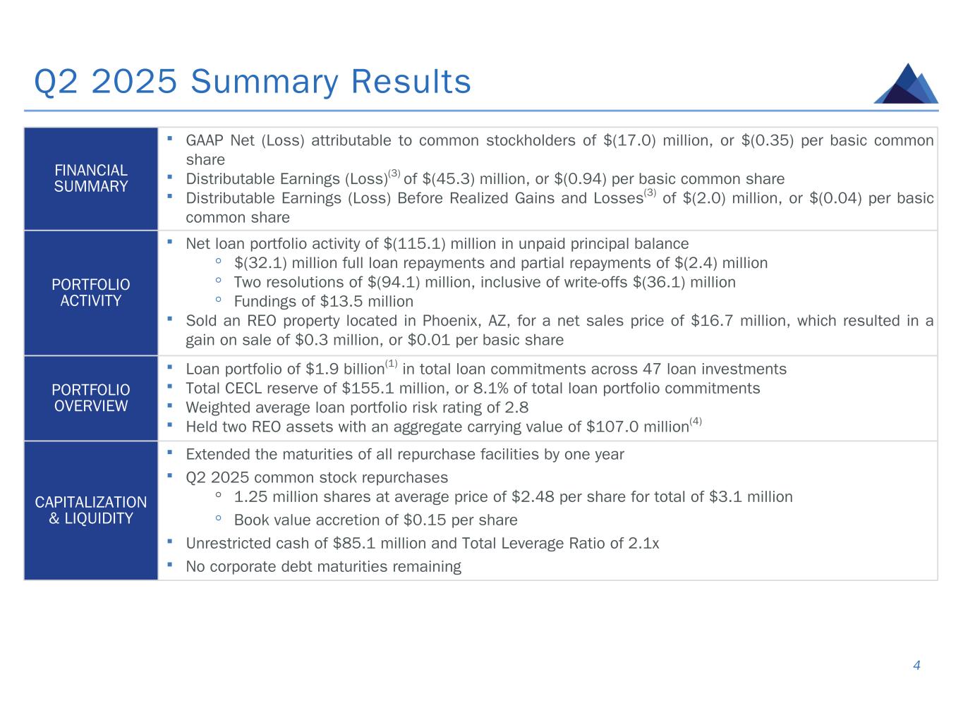 ニューヨーク、2025年8月5日 - グラニット・ポイント・モーゲージ・トラスト・インク(NYSE: GPMT)(以下「GPMT」、「グラニット・ポイント」または「当社」)は本日、2025年6月30日に終了した四半期決算を発表し、四半期末以降の活動について最新情報を提供しました。2025年第2四半期の業績を含む決算補足資料は、www.gpmtreit.com。