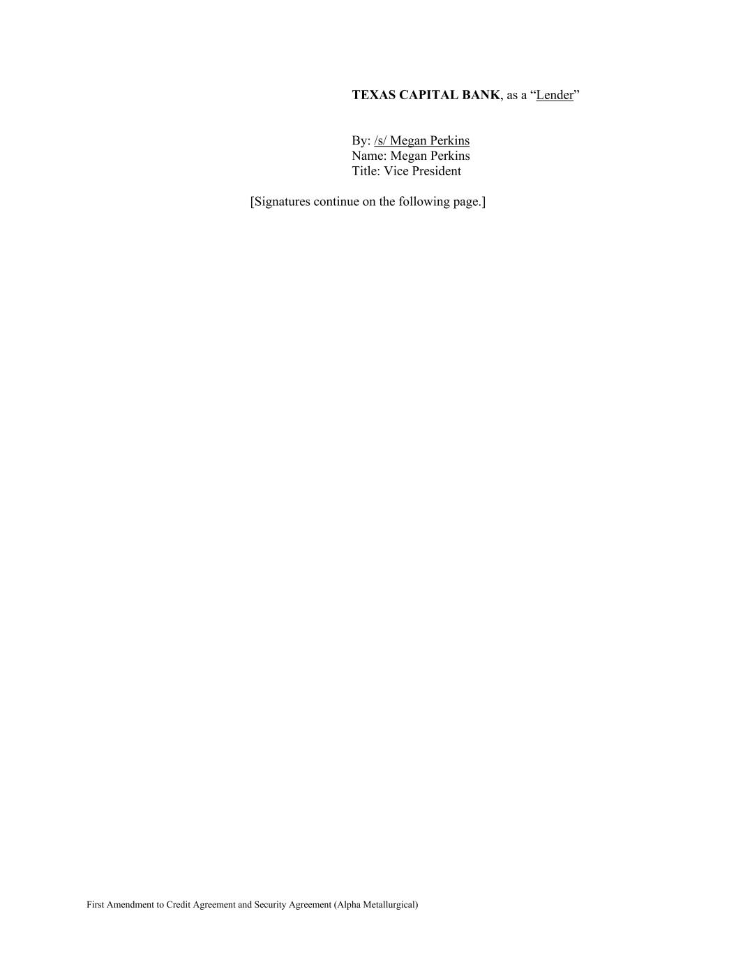 First Amendment to Credit Agreement and Security Agreement (Alpha Metallurgical) TEXAS CAPITAL BANK, as a “Lender” By: /s/ Megan Perkins Name: Megan Perkins Title: Vice President [Signatures continue on the following page.]