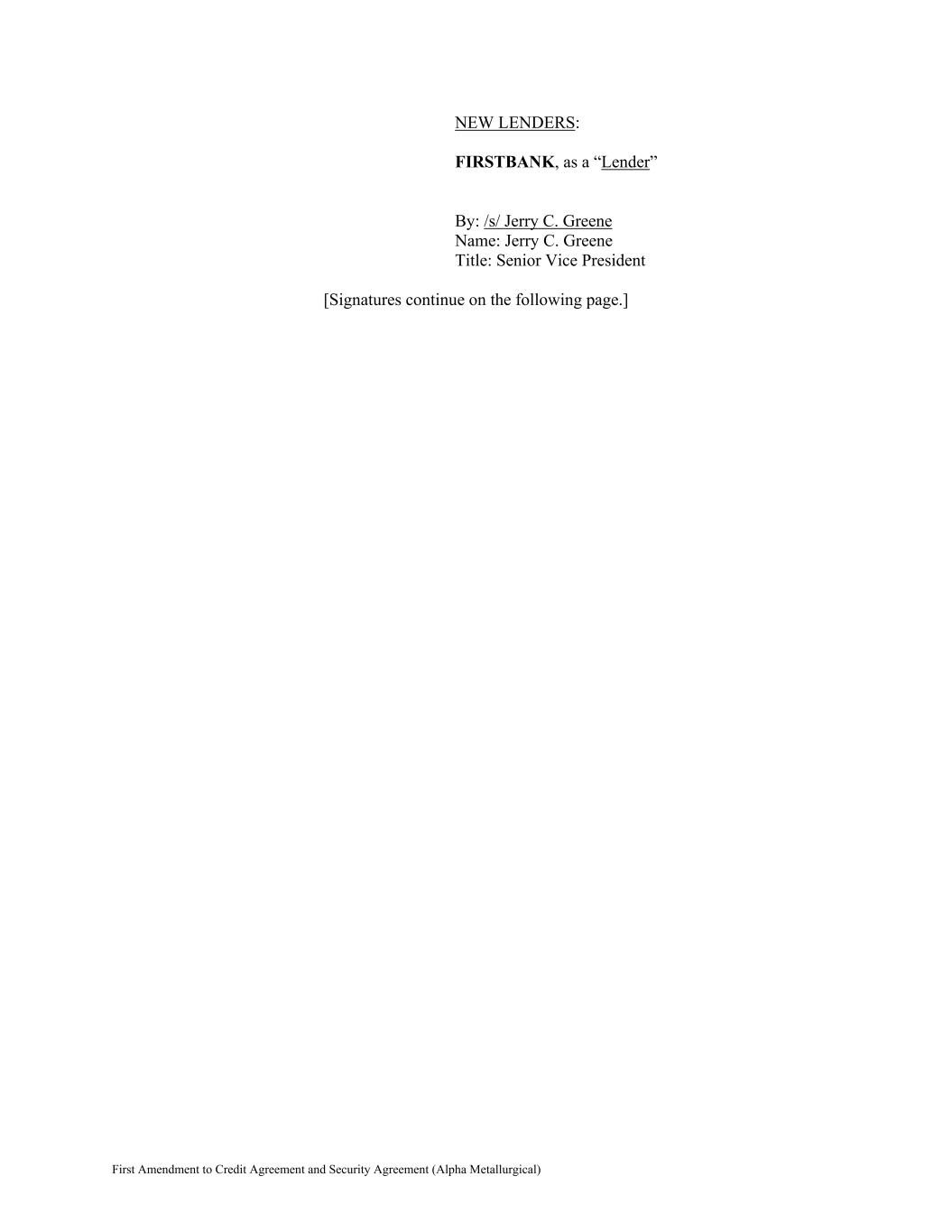 First Amendment to Credit Agreement and Security Agreement (Alpha Metallurgical) NEW LENDERS: FIRSTBANK, as a “Lender” By: /s/ Jerry C. Greene Name: Jerry C. Greene Title: Senior Vice President [Signatures continue on the following page.]