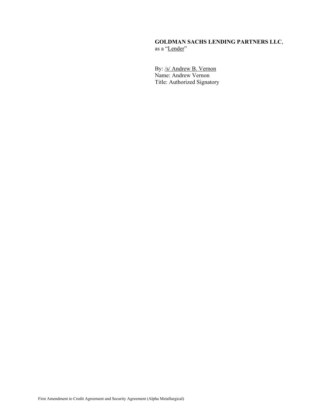 First Amendment to Credit Agreement and Security Agreement (Alpha Metallurgical) GOLDMAN SACHS LENDING PARTNERS LLC, as a “Lender” By: /s/ Andrew B. Vernon Name: Andrew Vernon Title: Authorized Signatory
