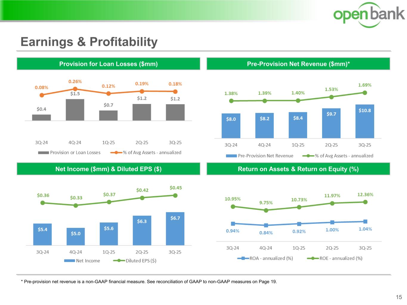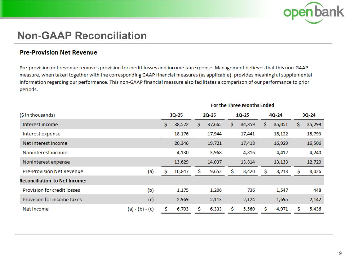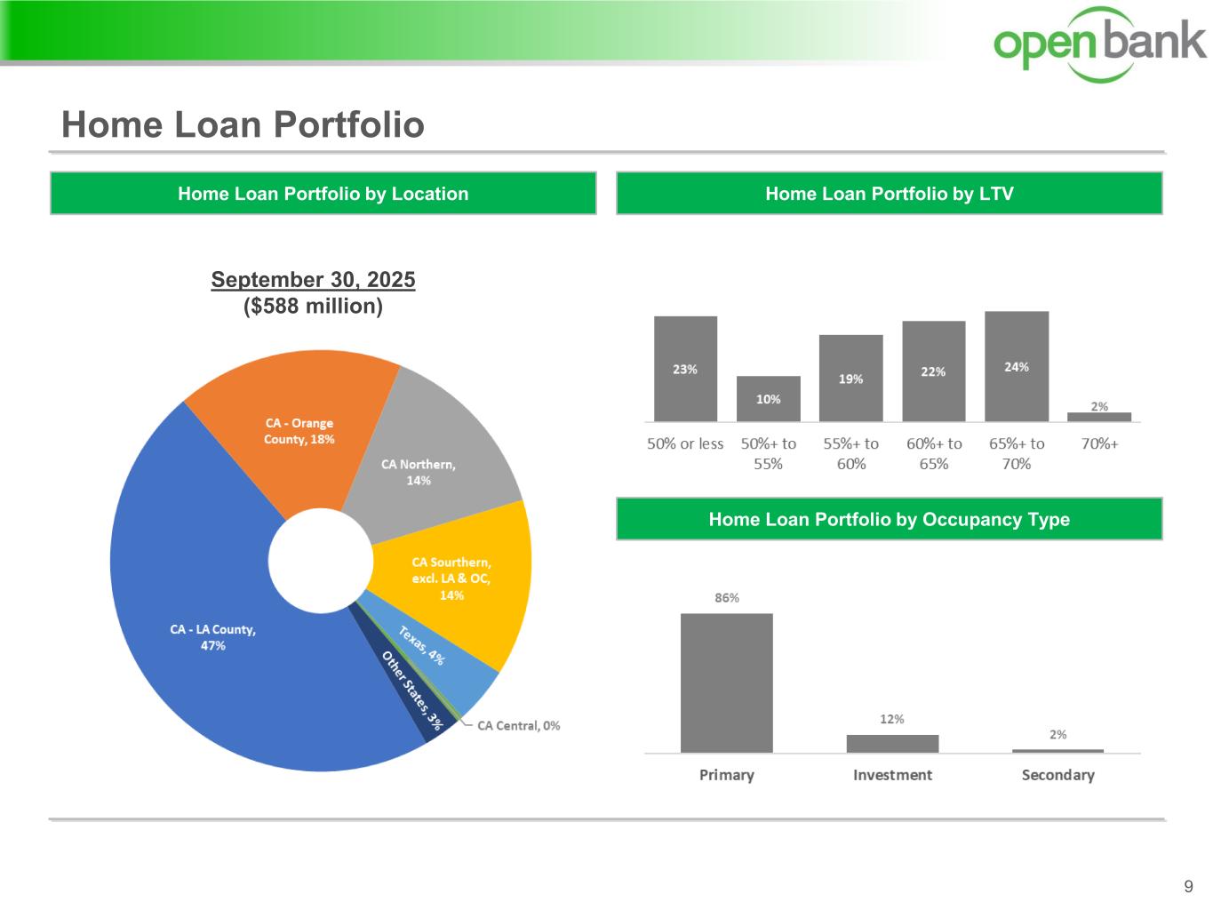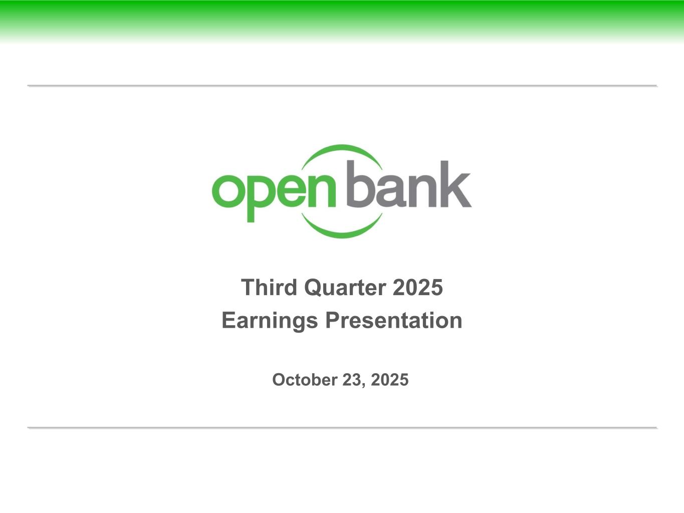 カリフォルニア州ロサンゼルス(2025年10月23日)-オープン・バンクの親会社であるOPバンコープ(NASDAQ:OPBK)は本日、次のように報告した:
