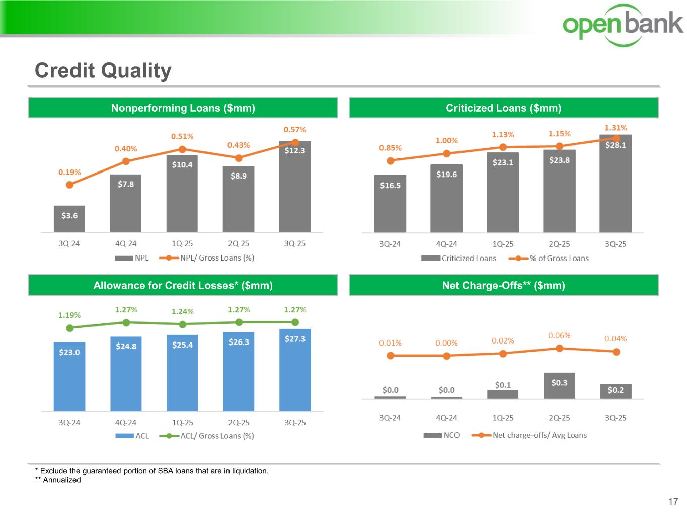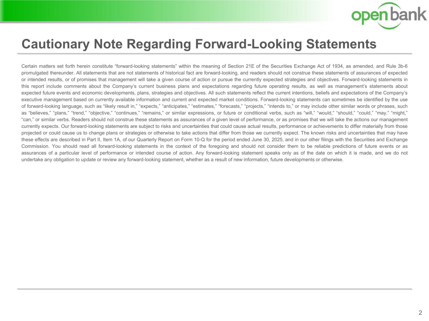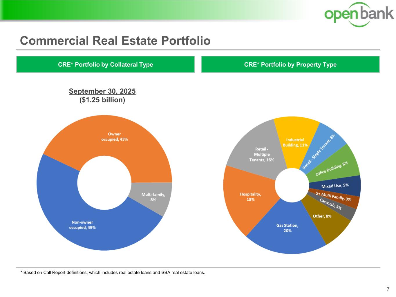 カリフォルニア州ロサンゼルス(2025年10月23日)-オープン・バンクの親会社であるOPバンコープ(NASDAQ:OPBK)は本日、次のように報告した: