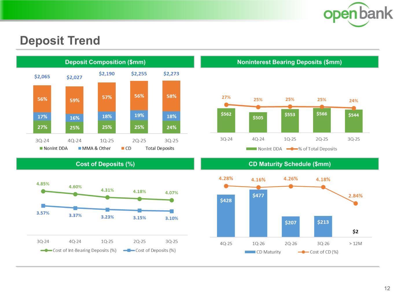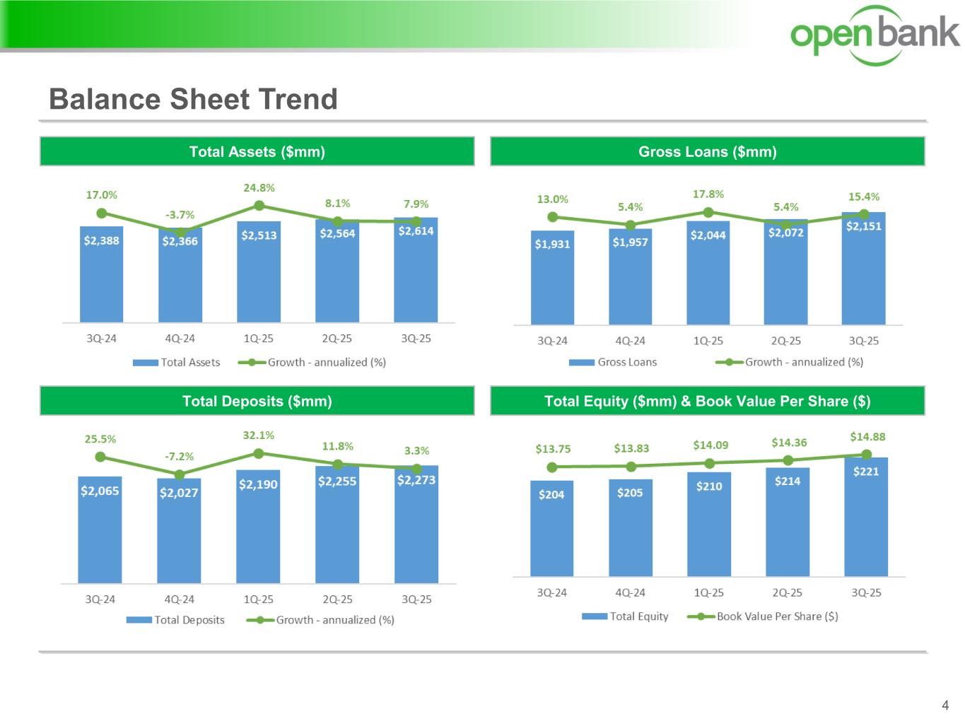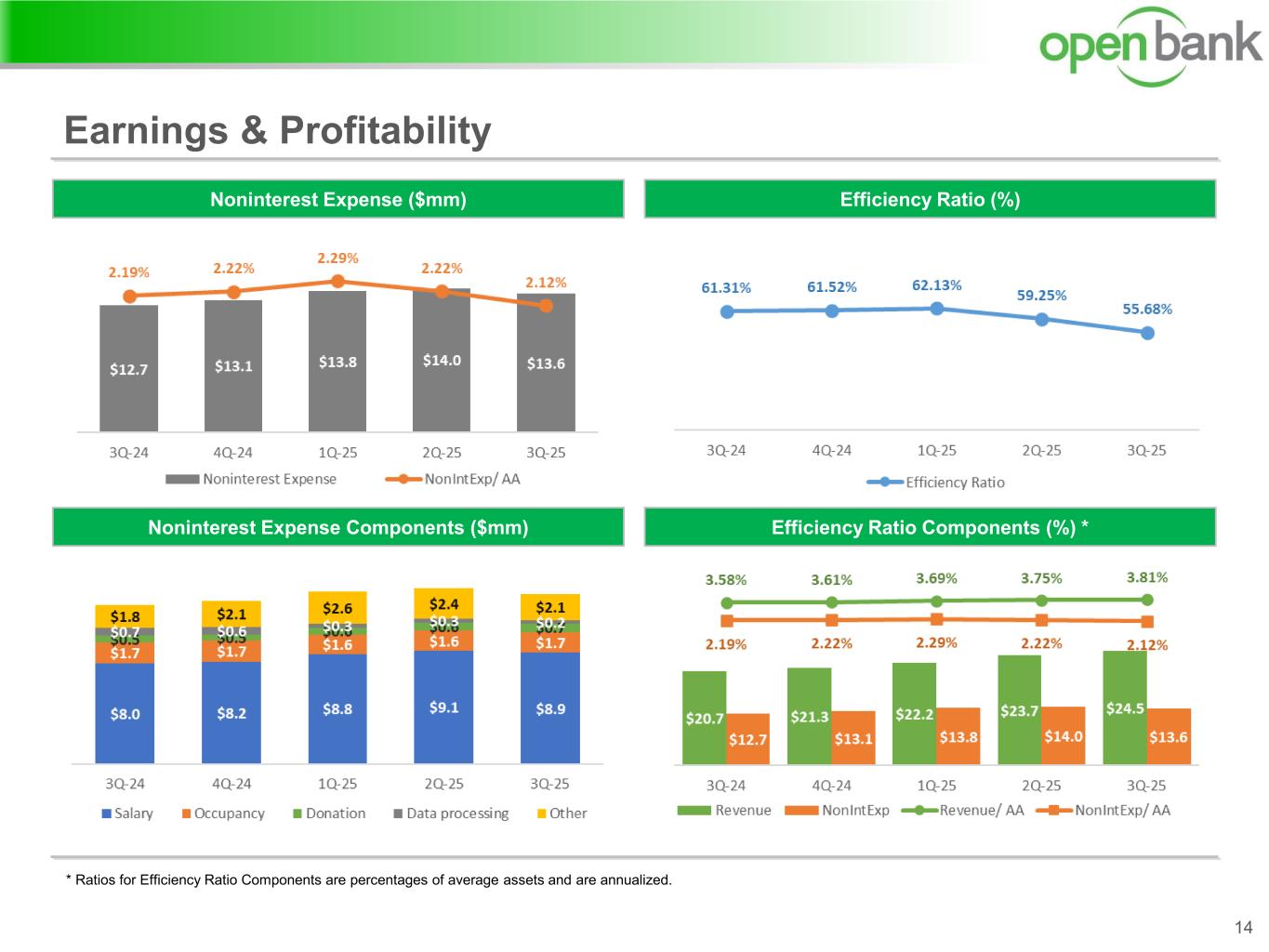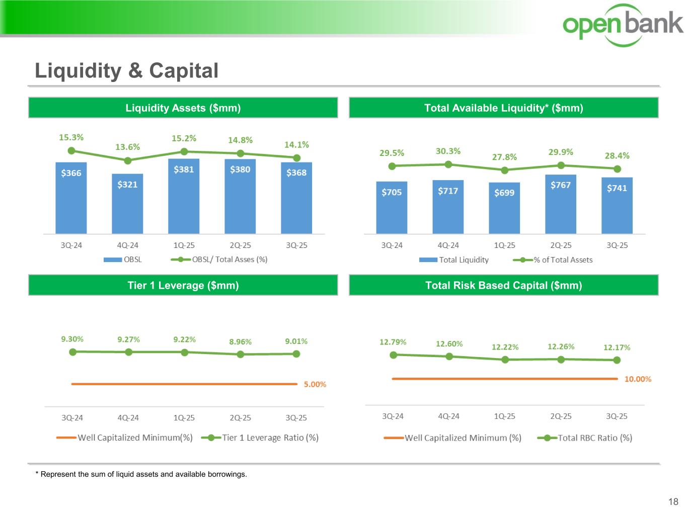 カリフォルニア州ロサンゼルス(2025年10月23日)-オープン・バンクの親会社であるOPバンコープ(NASDAQ:OPBK)は本日、次のように報告した: