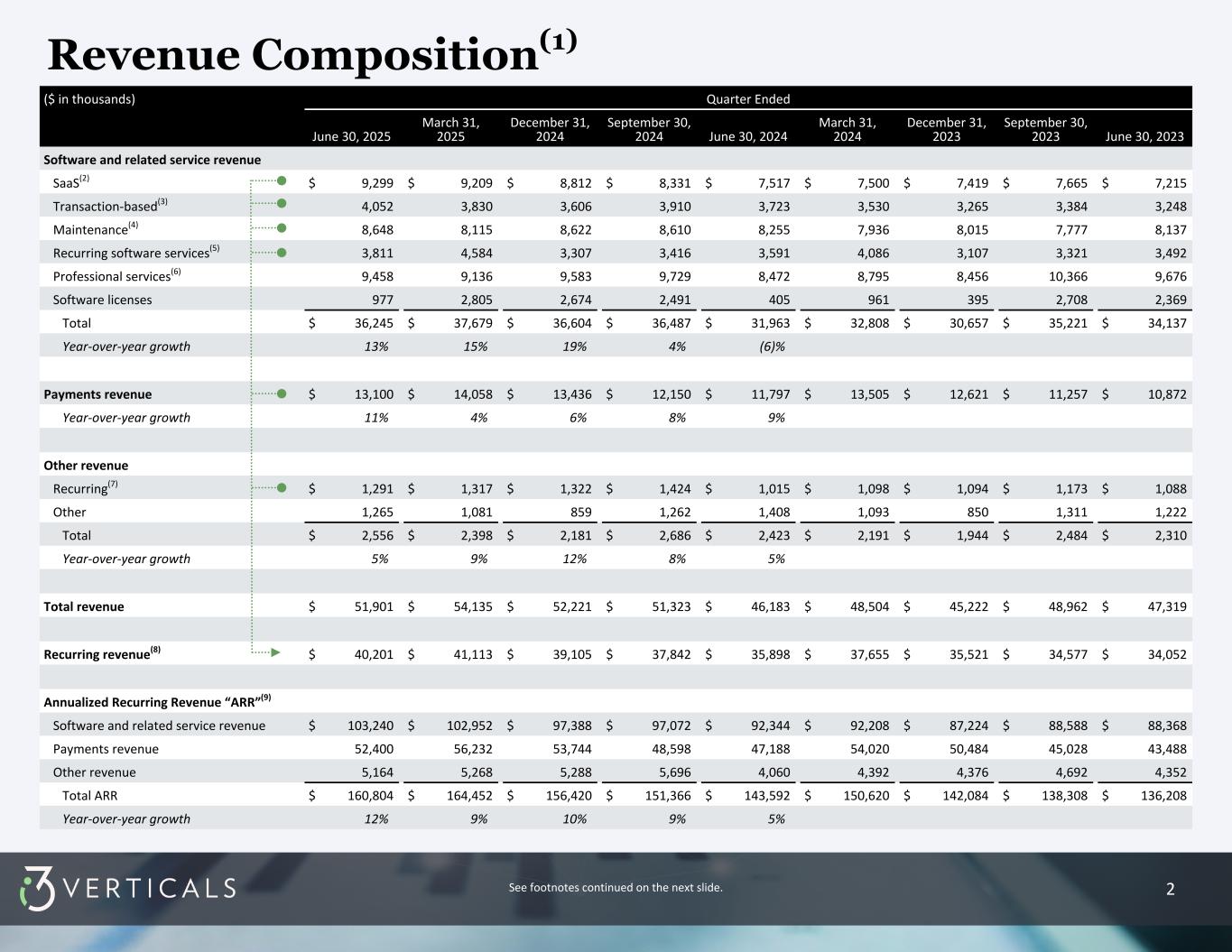 -2025年6月30日および2024年6月30日に終了した3ヶ月間の継続事業1,5からの年換算経常収益(ARR)はそれぞれ1億6,080万ドルおよび1億4,360万ドルであり、対前年同期成長率は12.0%であった。