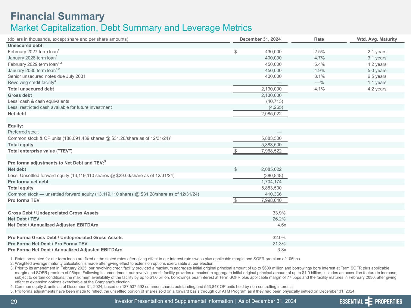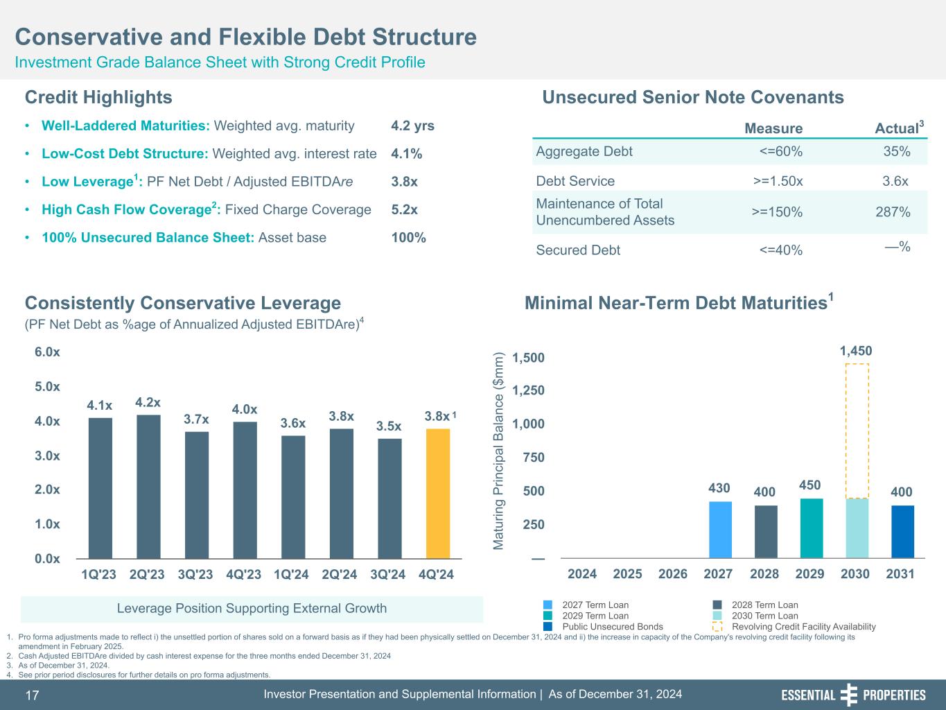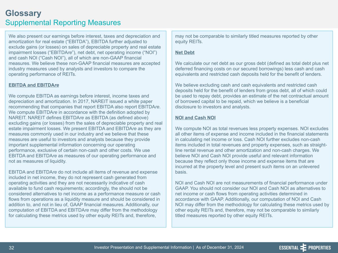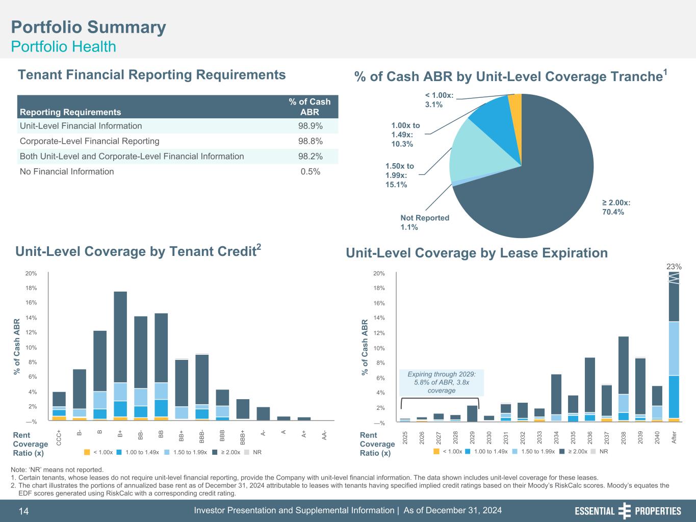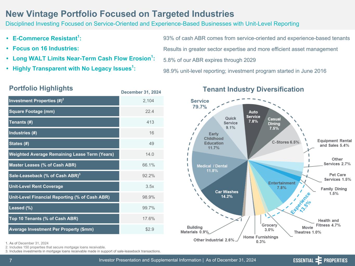 ニュージャージー州プリンストン--(BUSINESS WIRE)--(ビジネスワイヤ) -- エッセンシャル・プロパティーズ・リアルティ・トラスト(NYSE: EPRT、以下「エッセンシャル・プロパティーズ」または「当社」)は本日、2024年12月31日に終了した3カ月間および1年間の営業成績を発表しました。