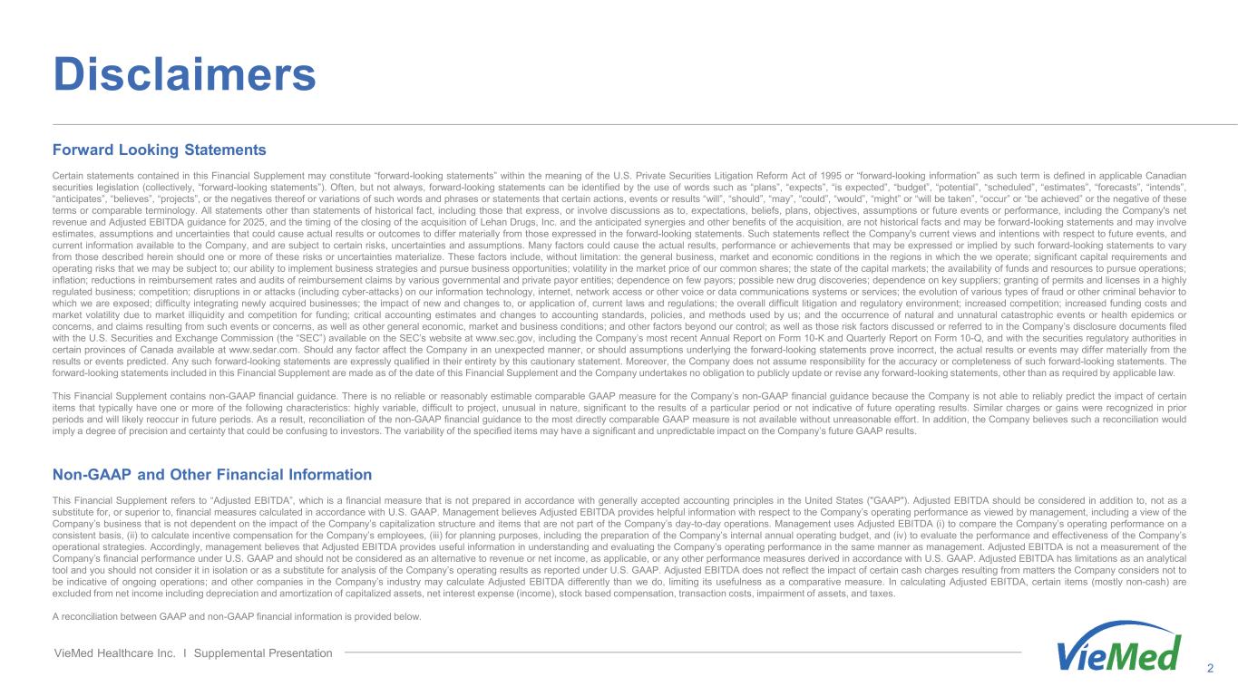 -2025年5月6日に既に開示した通り、ヴィームドは、呼吸ケアと女性の健康に特化した在宅医療機器を提供するヘルスケア企業リーハンズ・メディカル・イクイップメントを約2,600万ドルで買収することに合意した。2024年のリーンの純収入は約2,570万ドル、調整後EBITDAは約740万ドルであった。