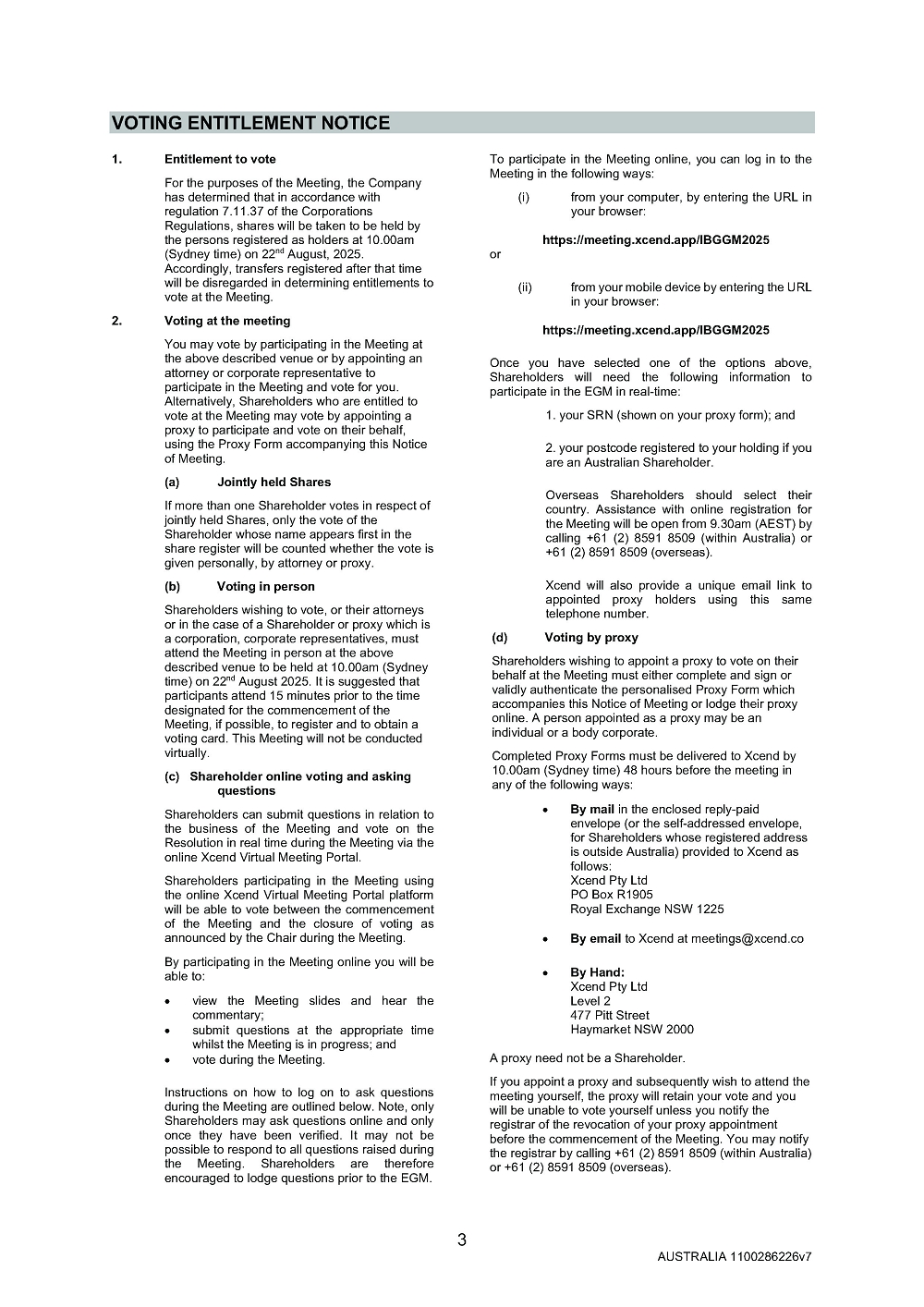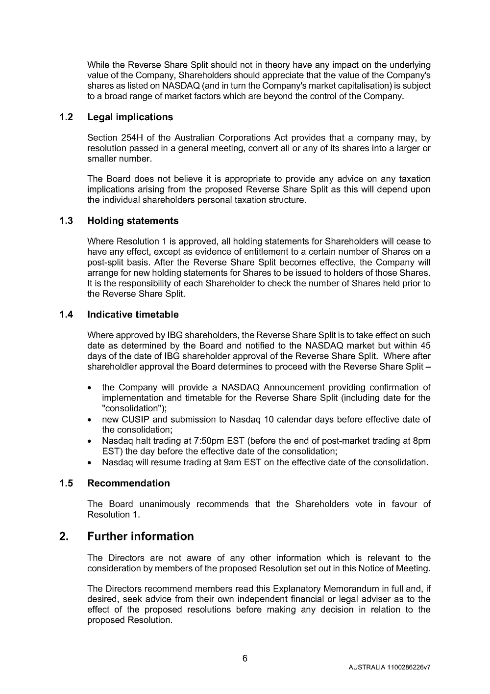The Company will request such a hearing before the Nasdaq Hearings Panel (the “Panel”), which will stay any suspension or delisting action pending completion of the hearing process and the expiration of any extension period that may be granted. During this process, the Company’s ordinary shares will continue to trade on Nasdaq under the symbol “IBG”. There can be no assurance that the Panel will grant the Company’s request for continued listing or that the Company will regain compliance with Nasdaq’s continued listing requirements within any compliance period that may be granted.