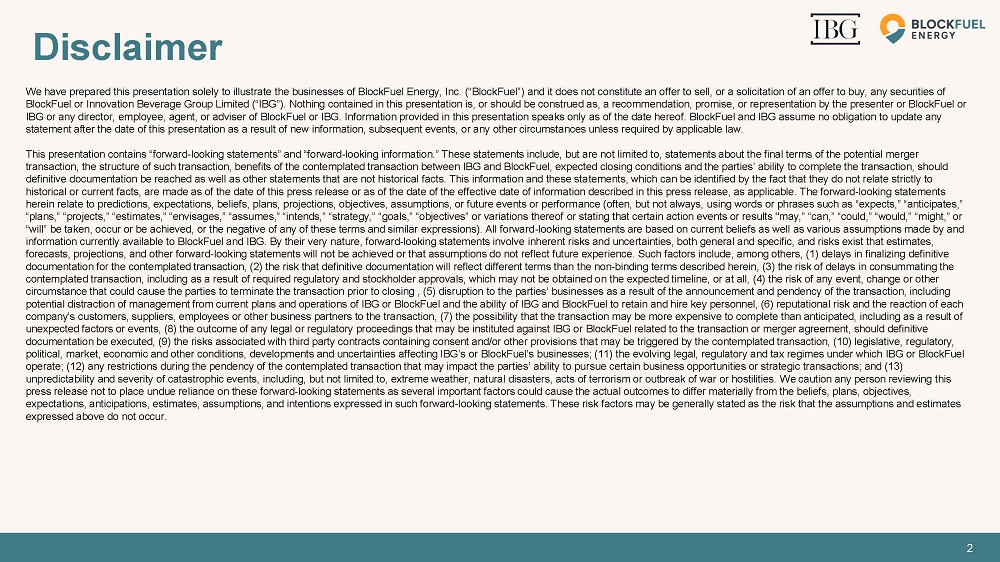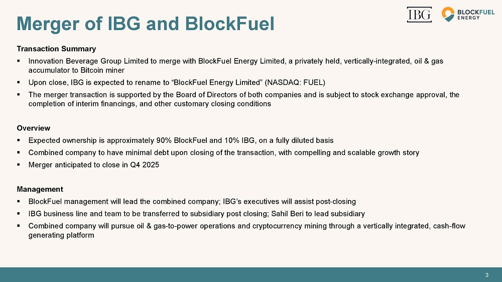 Innovation Beverage Group Ltd (the “Company”) is furnishing this Report on Form 6-K to provide an investor presentation relating to the Company’s previously announced proposed merger with BlockFuel Energy, Inc. (“BlockFuel”). The investor presentation includes information regarding the Company, BlockFuel and the proposed combined company.