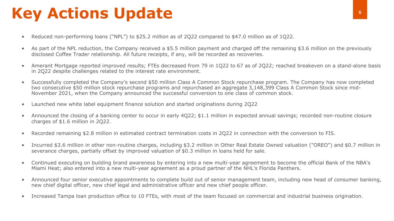 これは、元プリンシパル2名が当行の常勤従業員となった際にAMTMの持分を当社に譲渡したこと、および当 社が第2四半期にAMTMに100万ドルの追加出資を行ったことによるものです。22 年第 2 四半期、AMTM は合計 240 万ドルの非金利利益を計上しました。22 年第 2 四半期に AMTM は 285 件の申込みを受け、253 件、合計 1.186 億ドルの融資を行いました。22 年第 2 四半期末の売却予定のモーゲージ・ローン総額は 5,490 万ドルでした。AMTMのFTEは、現在の市場環境に鑑みて従業員数を調整した結果、22年第1四半期の79人から第2四半期には67人に減少しました。