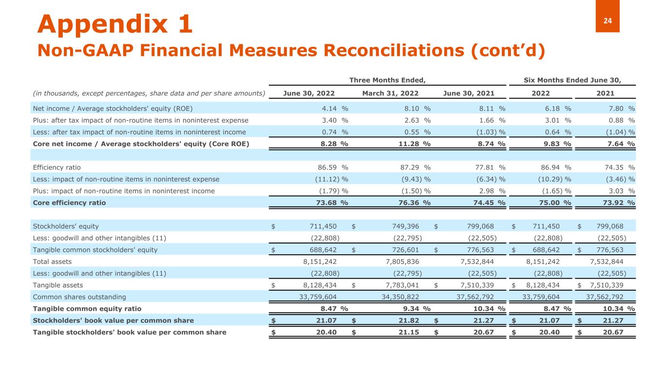 -当社株主に帰属する普通株式1株当り株主資本は、前年同期の21.82ドルに対し、当四半期は21.07ドル、前四半期は21.27ドルでした。普通株式一株当たりの有形固定資産簿価(以下「TBV」)1 は、前年同期の 21.15 ドルに対し、当四半期は 20.40 ドルでした。