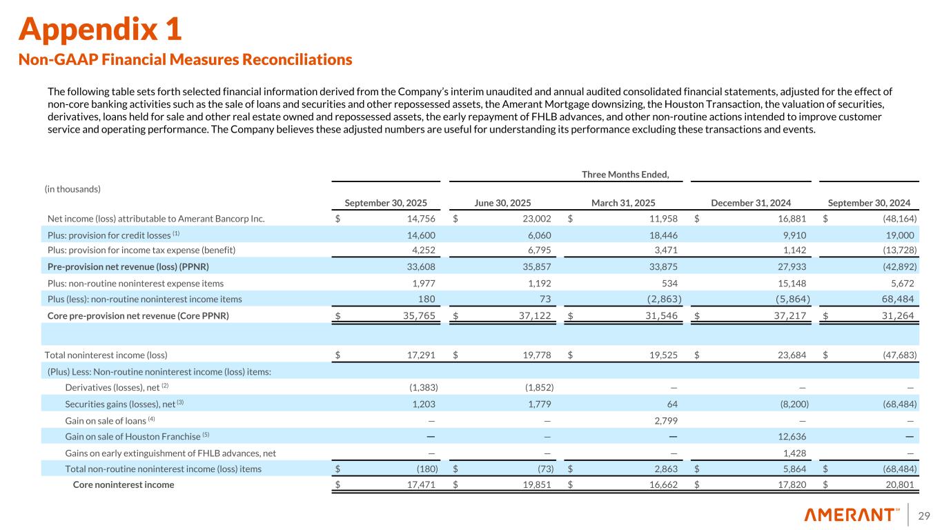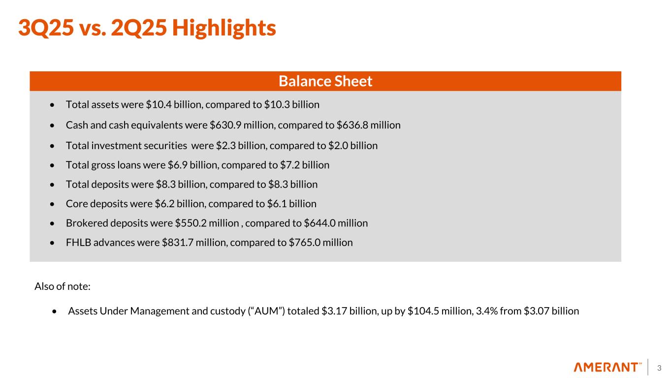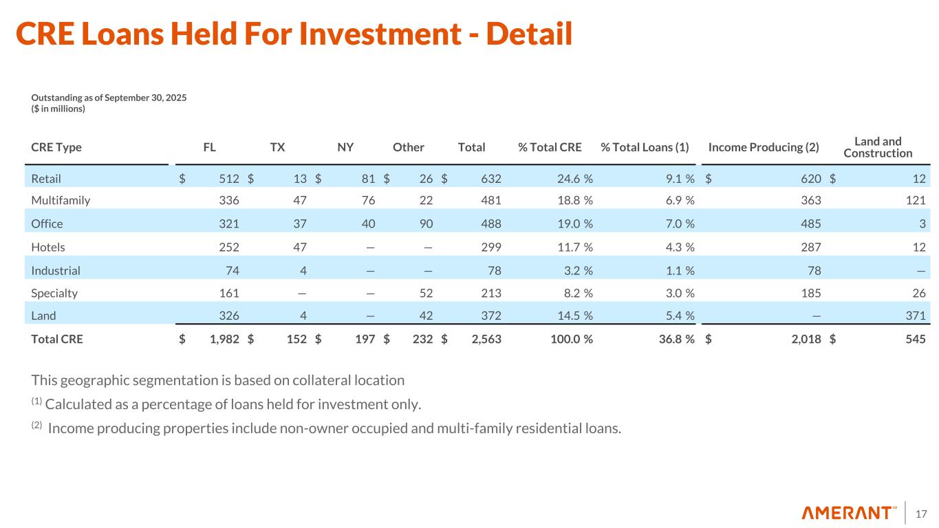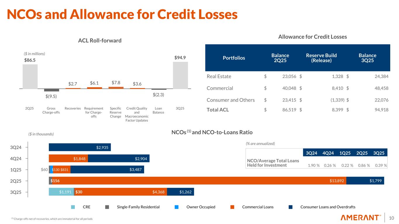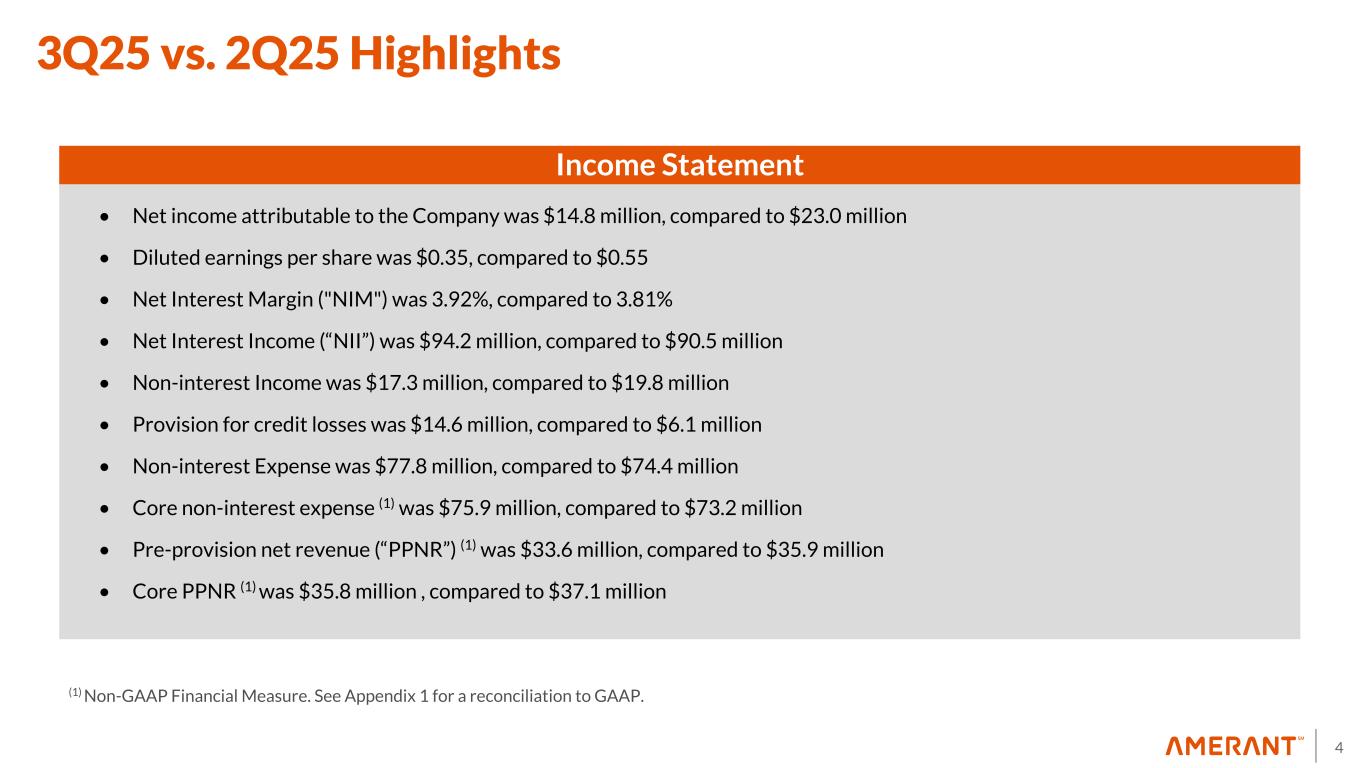–The Company has provided additional details regarding asset quality in the 3Q25 earnings presentation (https://investor.amerantbank.com).