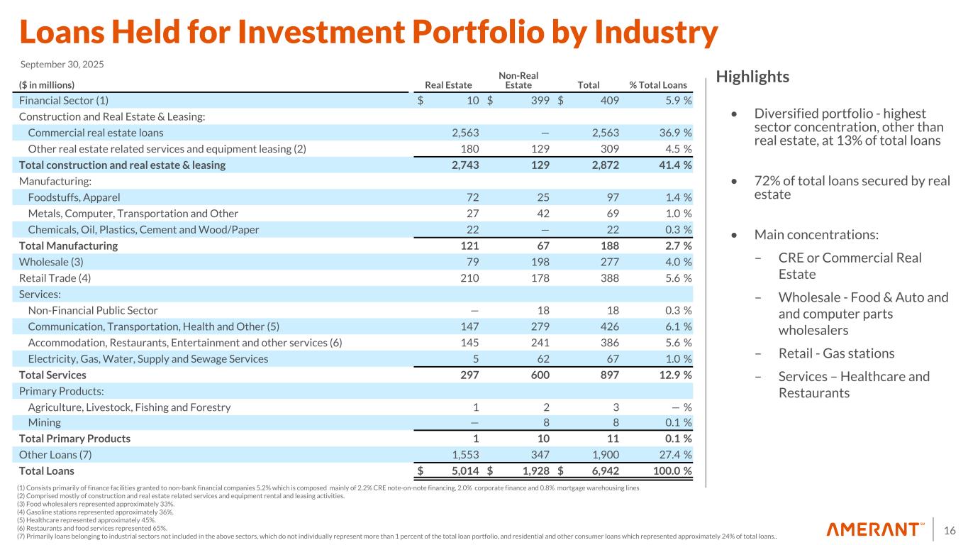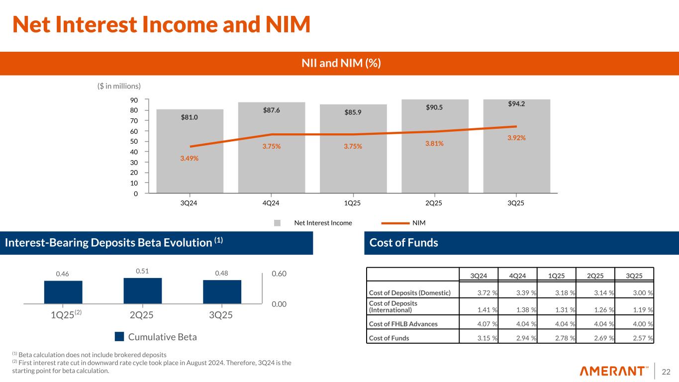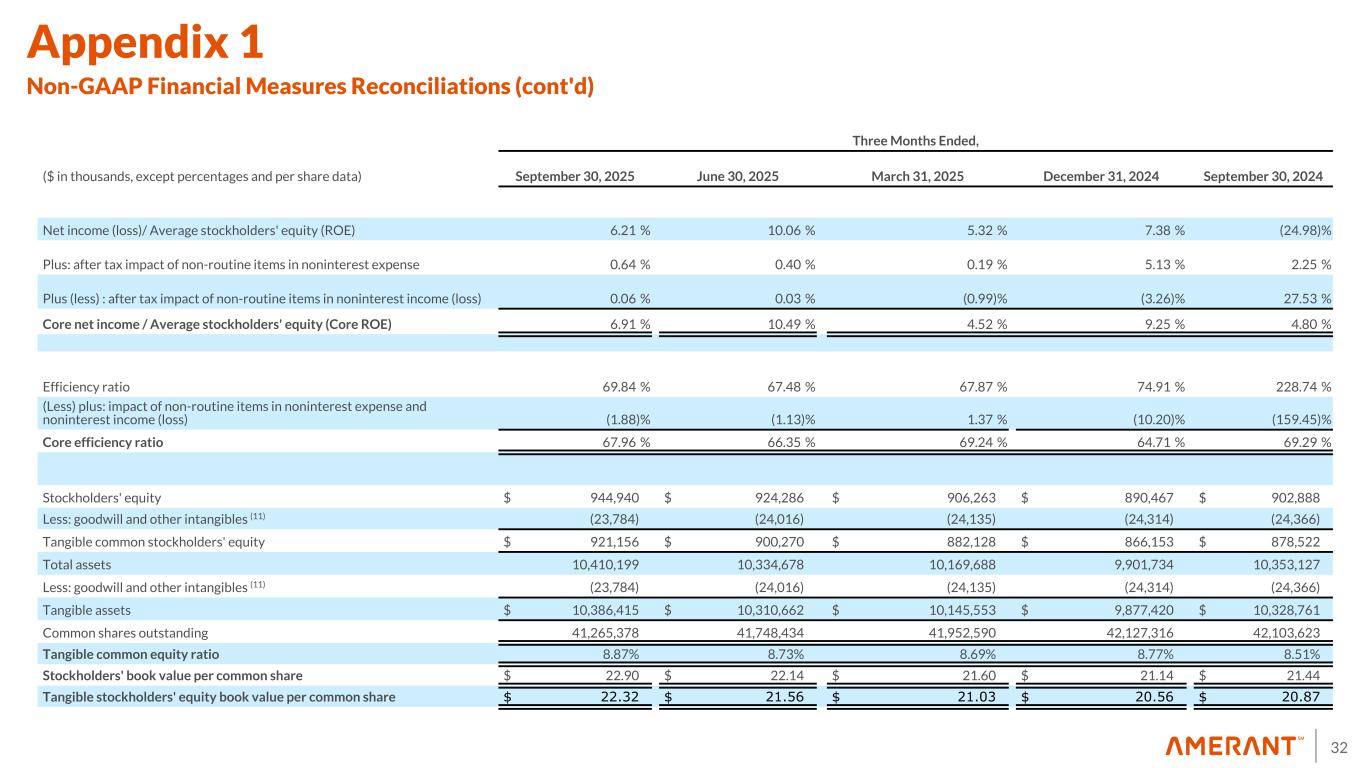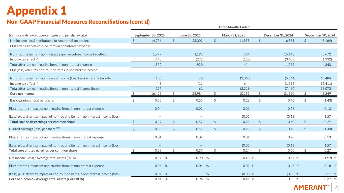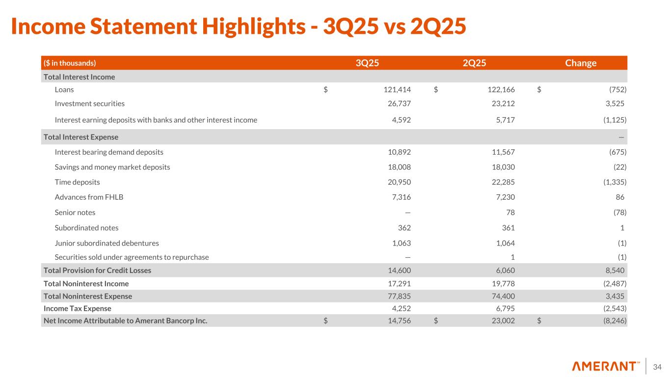 –The Company has provided additional details regarding asset quality in the 3Q25 earnings presentation (https://investor.amerantbank.com).