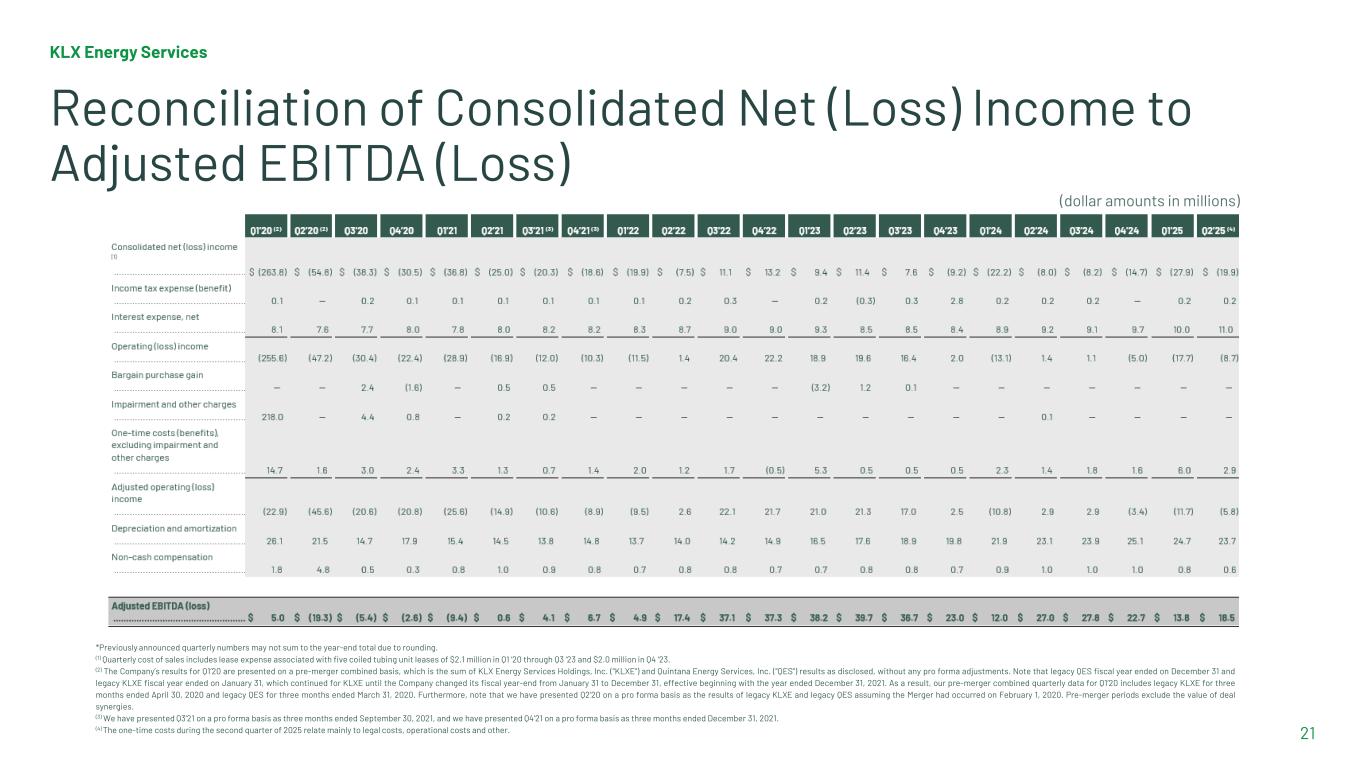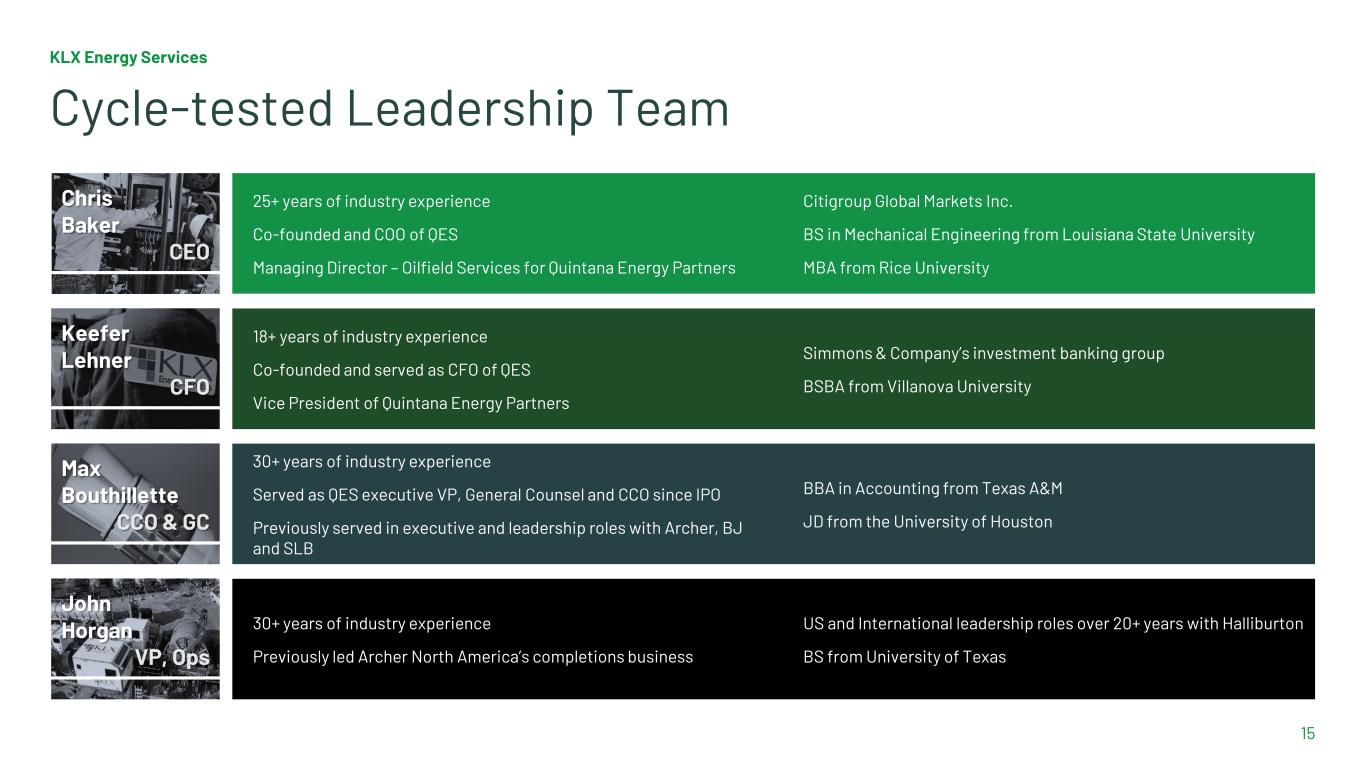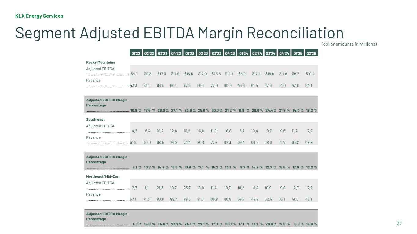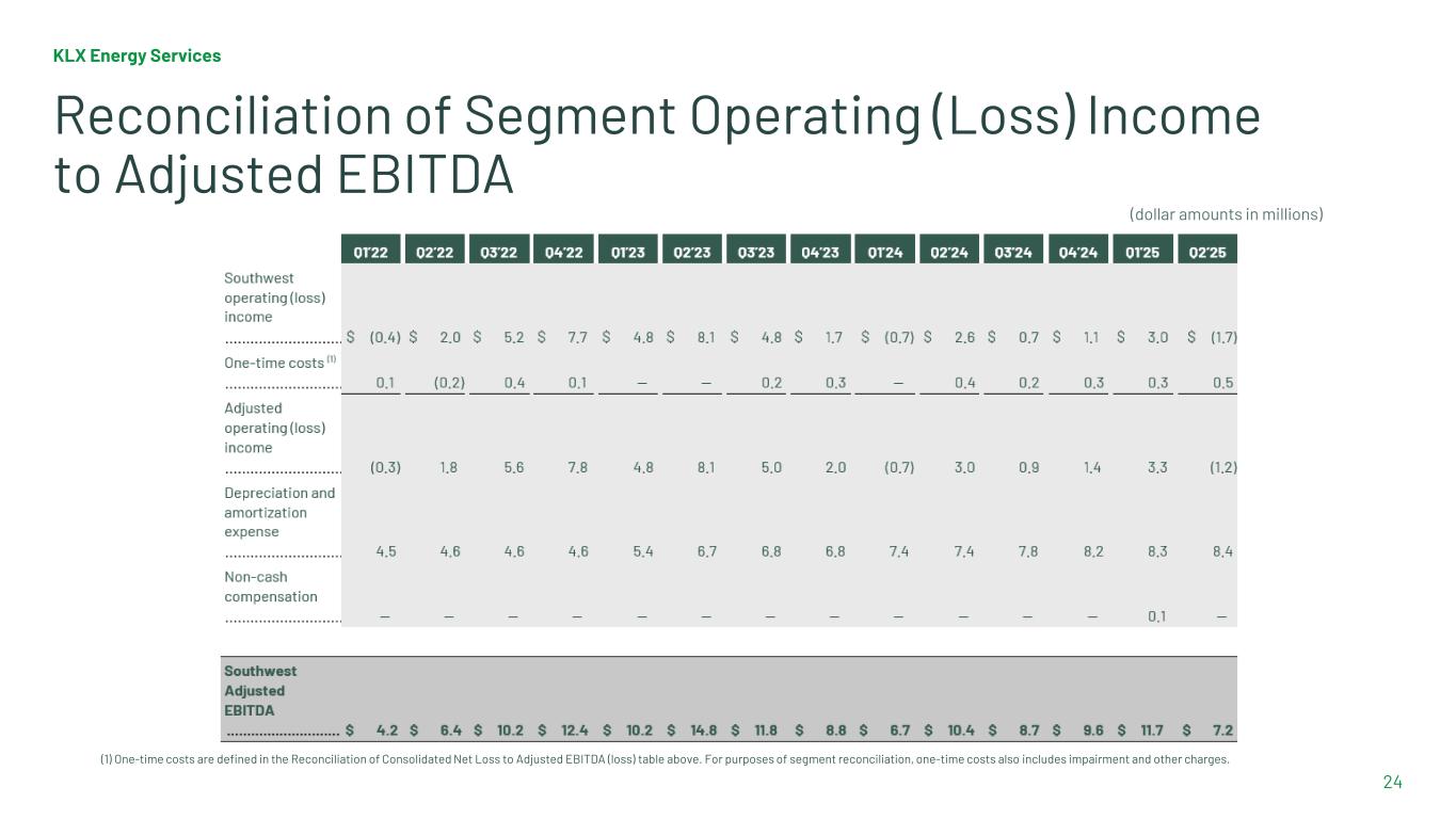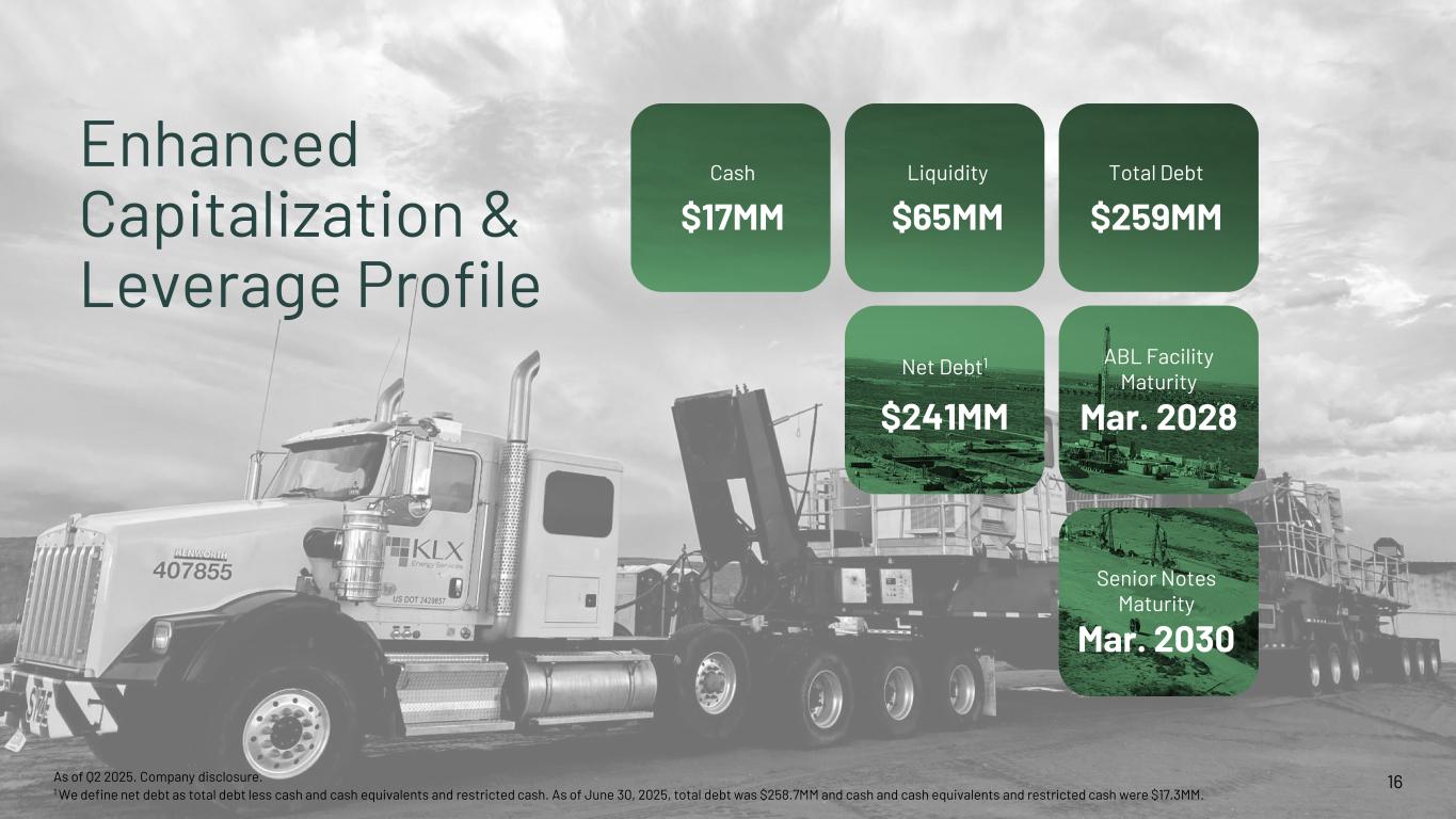 Forward-Looking Statements Cautionary Statement on Forward-looking Statements This presentation contains forward-looking statements within the meaning of Section 27A of the Securities Act of 1933, as amended, and Section 21E of the Exchange Act. This presentation includes forward-looking statements that reflect our current expectations, projections and goals relating to our future results, performance and prospects. Forward-looking statements include all statements that are not historical in nature and are not current facts. When used in this presentation, the words “believe,” “expect,” “plan,” “intend,” “anticipate,” “estimate,” “predict,” “potential,” “continue,” “may,” “might,” “should,” “could,” “will” or the negative of these terms or similar expressions are intended to identify forward-looking statements, although not all forward-looking statements contain such identifying words. These forward-looking statements are based on our current expectations and assumptions about future events and are based on currently available information as to the outcome and timing of future events with respect to, among other things: our operating cash flows; the availability of capital and our liquidity; our ability to renew and refinance our debt; our future revenue, income and operating performance; our ability to sustain and improve our utilization, revenue and margins; our ability to maintain acceptable pricing for our services; future capital expenditures; our ability to finance equipment, working capital and capital expenditures; our ability to execute our long-term growth strategy and to integrate our acquisitions; our ability to successfully develop our research and technology capabilities and implement technological developments and enhancements; and the timing and success of strategic initiatives and special projects. The Company’s actual experience and results may differ materially from the experience and results anticipated in such statements. Forward-looking statements are not assurances of future performance and actual results could differ materially from our historical experience and our present expectations or projections. Although we believe the expectations and assumptions reflected in these forward-looking statements are reasonable as and when made, no assurance can be given that these assumptions are accurate or that any of these expectations will be achieved (in full or at all). Our forward-looking statements involve significant risks, contingencies and uncertainties, most of which are difficult to predict and many of which are beyond our control. Known material factors that could cause actual results to differ materially from those in the forward-looking statements include, but are not limited to, risks associated with the following: a decline in demand for our services, declining commodity prices, overcapacity and other competitive factors affecting our industry; the cyclical nature and volatility of the oil and gas industry, which impacts the level of exploration, production and development activity and spending patterns by oil and natural gas exploration and production companies; a decline in, or substantial volatility of, crude oil and gas commodity prices, which generally leads to decreased spending by our customers and negatively impacts drilling, completion and production activity; inflation; increases in interest rates; the ongoing conflict in Ukraine and its continuing effects on global trade; the on-going conflict in Israel; supply chain issues; and other risks and uncertainties listed in our filings with the U.S. Securities and Exchange Commission, including our Current Reports on Form 8-K that we file from time to time, Quarterly Reports on Form 10-Q and Annual Report on Form 10-K. Readers are cautioned not to place undue reliance on forward- looking statements, which speak only as of the date hereof. We undertake no obligation to publicly update or revise any forward-looking statements after the date they are made, whether as a result of new information, future events or otherwise, except as required by law. Disclaimer on Non-GAAP Financial Measures This presentation includes Adjusted EBITDA, Adjusted EBITDA margin, levered free cash flow, unlevered free cash flow and net debt measures. Each of the metrics are “non-GAAP financial measures” as defined in Regulation G of the Securities Exchange Act of 1934. Adjusted EBITDA is a supplemental non-GAAP financial measure that is used by management and external users of our financial statements, such as industry analysts, investors, lenders and rating agencies. Adjusted EBITDA is not a measure of net earnings or cash flows as determined by GAAP. We define Adjusted EBITDA as net earnings (loss) before interest, taxes, depreciation and amortization, further adjusted for (i) goodwill and/or long-lived asset impairment charges, (ii) stock-based compensation expense, (iii) restructuring charges, (iv) transaction and integration costs related to acquisitions, and (v) other expenses or charges to exclude certain items that we believe are not reflective of the ongoing performance of our business. Adjusted EBITDA is used to calculate the Company’s leverage ratio, consistent with the terms of the Company’s ABL Facility. We believe Adjusted EBITDA is useful because it allows us to supplement the GAAP measures in order to more effectively evaluate our operating performance and compare the results of our operations from period to period without regard to our financing methods or capital structure. We exclude the items listed above in arriving at Adjusted EBITDA because these amounts can vary substantially from company to company within our industry depending upon accounting methods and book values of assets, capital structures and the method by which the assets were acquired. Adjusted EBITDA should not be considered as an alternative to, or more meaningful than, net inco