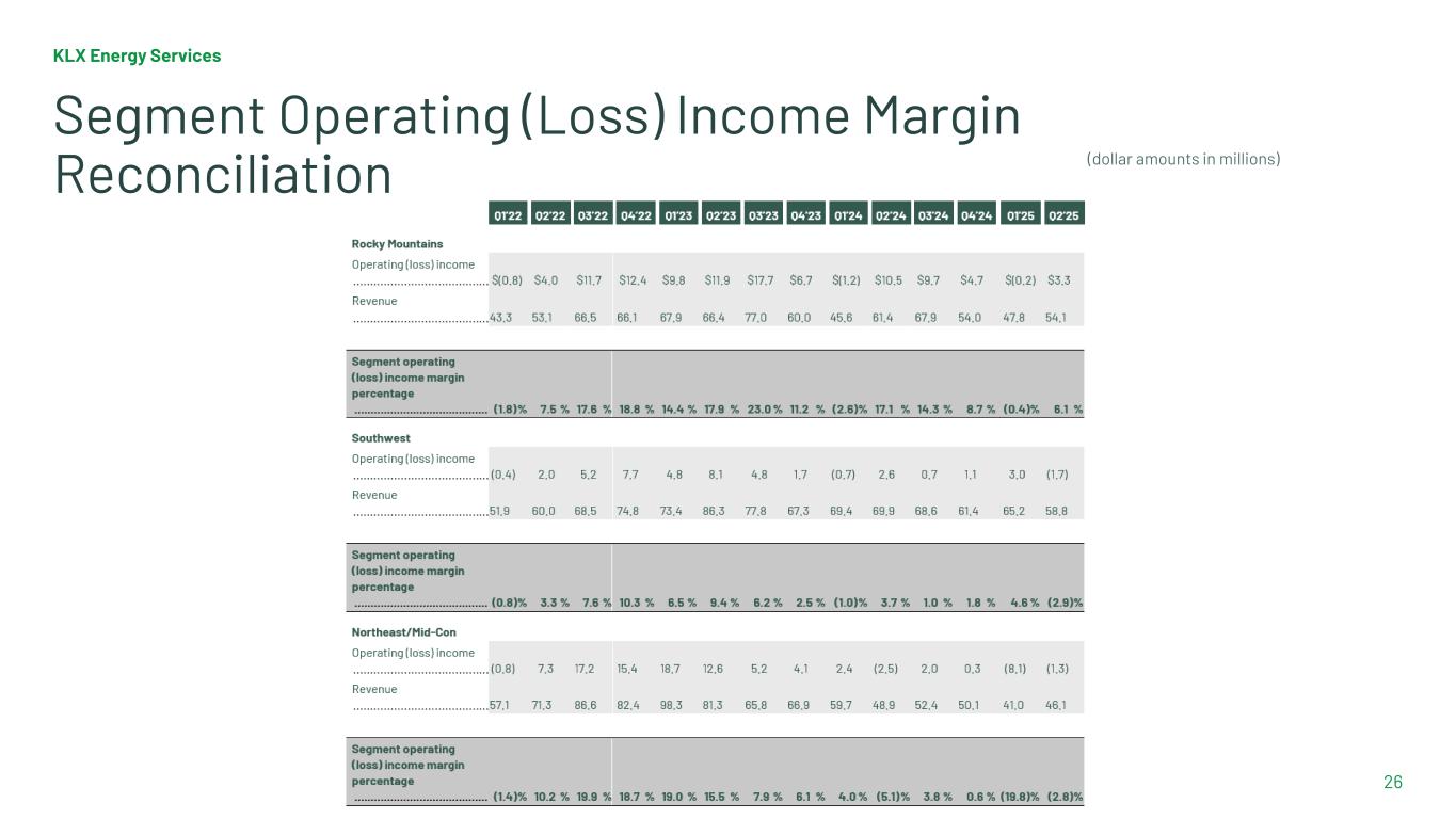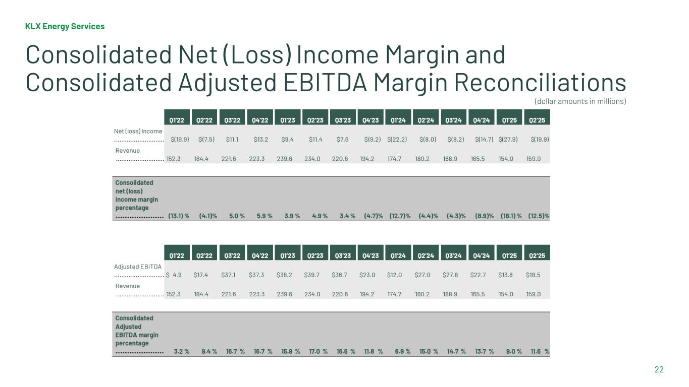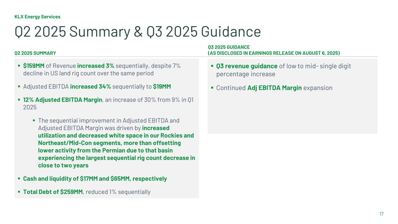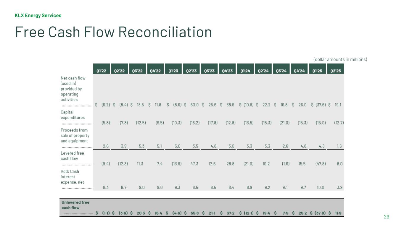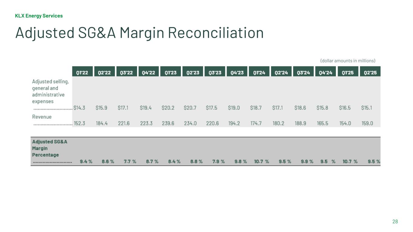 Forward-Looking Statements Cautionary Statement on Forward-looking Statements This presentation contains forward-looking statements within the meaning of Section 27A of the Securities Act of 1933, as amended, and Section 21E of the Exchange Act. This presentation includes forward-looking statements that reflect our current expectations, projections and goals relating to our future results, performance and prospects. Forward-looking statements include all statements that are not historical in nature and are not current facts. When used in this presentation, the words “believe,” “expect,” “plan,” “intend,” “anticipate,” “estimate,” “predict,” “potential,” “continue,” “may,” “might,” “should,” “could,” “will” or the negative of these terms or similar expressions are intended to identify forward-looking statements, although not all forward-looking statements contain such identifying words. These forward-looking statements are based on our current expectations and assumptions about future events and are based on currently available information as to the outcome and timing of future events with respect to, among other things: our operating cash flows; the availability of capital and our liquidity; our ability to renew and refinance our debt; our future revenue, income and operating performance; our ability to sustain and improve our utilization, revenue and margins; our ability to maintain acceptable pricing for our services; future capital expenditures; our ability to finance equipment, working capital and capital expenditures; our ability to execute our long-term growth strategy and to integrate our acquisitions; our ability to successfully develop our research and technology capabilities and implement technological developments and enhancements; and the timing and success of strategic initiatives and special projects. The Company’s actual experience and results may differ materially from the experience and results anticipated in such statements. Forward-looking statements are not assurances of future performance and actual results could differ materially from our historical experience and our present expectations or projections. Although we believe the expectations and assumptions reflected in these forward-looking statements are reasonable as and when made, no assurance can be given that these assumptions are accurate or that any of these expectations will be achieved (in full or at all). Our forward-looking statements involve significant risks, contingencies and uncertainties, most of which are difficult to predict and many of which are beyond our control. Known material factors that could cause actual results to differ materially from those in the forward-looking statements include, but are not limited to, risks associated with the following: a decline in demand for our services, declining commodity prices, overcapacity and other competitive factors affecting our industry; the cyclical nature and volatility of the oil and gas industry, which impacts the level of exploration, production and development activity and spending patterns by oil and natural gas exploration and production companies; a decline in, or substantial volatility of, crude oil and gas commodity prices, which generally leads to decreased spending by our customers and negatively impacts drilling, completion and production activity; inflation; increases in interest rates; the ongoing conflict in Ukraine and its continuing effects on global trade; the on-going conflict in Israel; supply chain issues; and other risks and uncertainties listed in our filings with the U.S. Securities and Exchange Commission, including our Current Reports on Form 8-K that we file from time to time, Quarterly Reports on Form 10-Q and Annual Report on Form 10-K. Readers are cautioned not to place undue reliance on forward- looking statements, which speak only as of the date hereof. We undertake no obligation to publicly update or revise any forward-looking statements after the date they are made, whether as a result of new information, future events or otherwise, except as required by law. Disclaimer on Non-GAAP Financial Measures This presentation includes Adjusted EBITDA, Adjusted EBITDA margin, levered free cash flow, unlevered free cash flow and net debt measures. Each of the metrics are “non-GAAP financial measures” as defined in Regulation G of the Securities Exchange Act of 1934. Adjusted EBITDA is a supplemental non-GAAP financial measure that is used by management and external users of our financial statements, such as industry analysts, investors, lenders and rating agencies. Adjusted EBITDA is not a measure of net earnings or cash flows as determined by GAAP. We define Adjusted EBITDA as net earnings (loss) before interest, taxes, depreciation and amortization, further adjusted for (i) goodwill and/or long-lived asset impairment charges, (ii) stock-based compensation expense, (iii) restructuring charges, (iv) transaction and integration costs related to acquisitions, and (v) other expenses or charges to exclude certain items that we believe are not reflective of the ongoing performance of our business. Adjusted EBITDA is used to calculate the Company’s leverage ratio, consistent with the terms of the Company’s ABL Facility. We believe Adjusted EBITDA is useful because it allows us to supplement the GAAP measures in order to more effectively evaluate our operating performance and compare the results of our operations from period to period without regard to our financing methods or capital structure. We exclude the items listed above in arriving at Adjusted EBITDA because these amounts can vary substantially from company to company within our industry depending upon accounting methods and book values of assets, capital structures and the method by which the assets were acquired. Adjusted EBITDA should not be considered as an alternative to, or more meaningful than, net inco