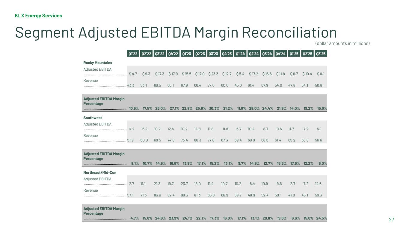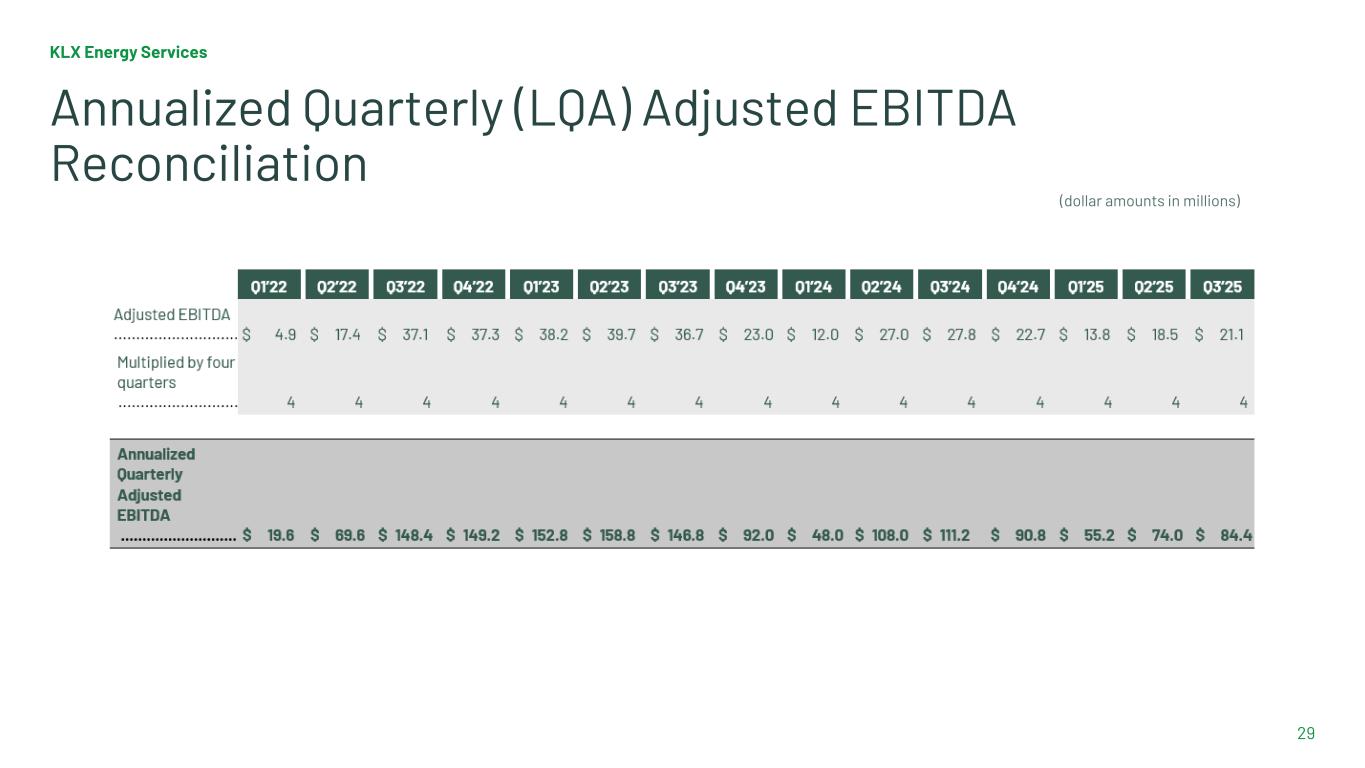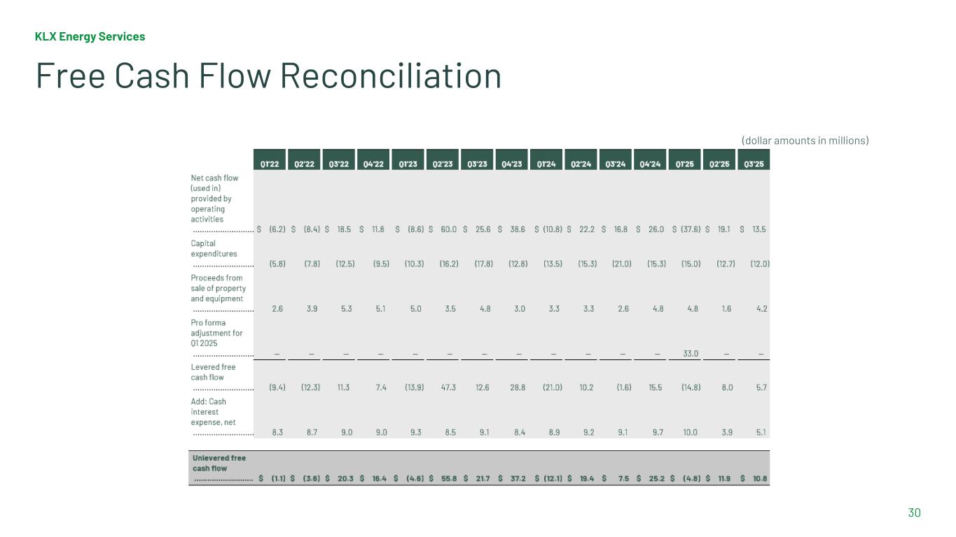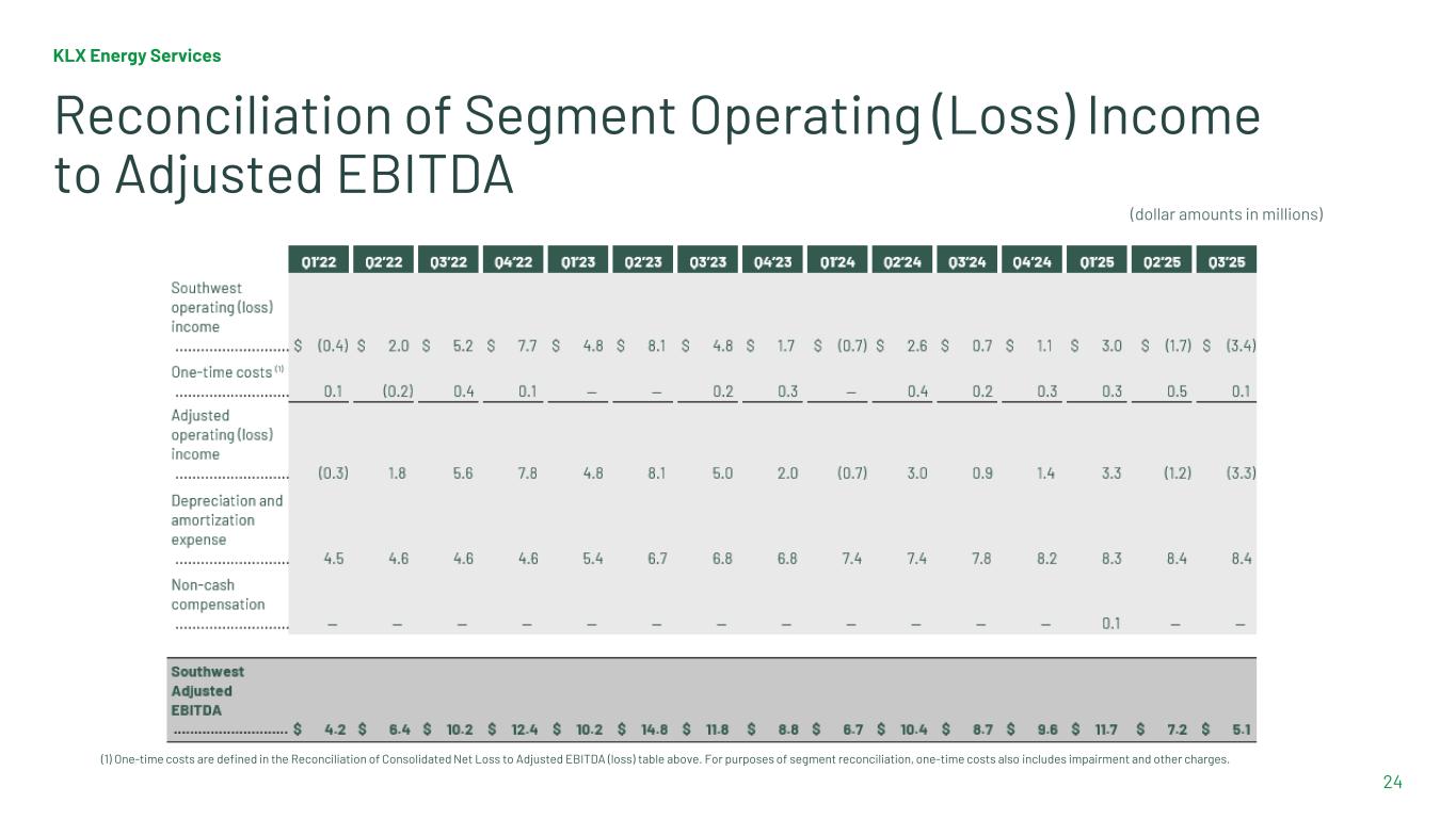 Forward-Looking Statements Cautionary Statement on Forward-looking Statements This presentation contains forward-looking statements within the meaning of Section 27A of the Securities Act of 1933, as amended, and Section 21E of the Exchange Act. This presentation includes forward-looking statements that reflect our current expectations, projections and goals relating to our future results, performance and prospects. Forward-looking statements include all statements that are not historical in nature and are not current facts. When used in this presentation, the words “believe,” “expect,” “plan,” “intend,” “anticipate,” “estimate,” “predict,” “potential,” “continue,” “may,” “might,” “should,” “could,” “will” or the negative of these terms or similar expressions are intended to identify forward-looking statements, although not all forward-looking statements contain such identifying words. These forward-looking statements are based on our current expectations and assumptions about future events and are based on currently available information as to the outcome and timing of future events with respect to, among other things: our operating cash flows; the availability of capital and our liquidity; our ability to renew and refinance our debt; our future revenue, income and operating performance; our ability to sustain and improve our utilization, revenue and margins; our ability to maintain acceptable pricing for our services; future capital expenditures; our ability to finance equipment, working capital and capital expenditures; our ability to execute our long-term growth strategy and to integrate our acquisitions; our ability to successfully develop our research and technology capabilities and implement technological developments and enhancements; and the timing and success of strategic initiatives and special projects. The Company’s actual experience and results may differ materially from the experience and results anticipated in such statements. Forward-looking statements are not assurances of future performance and actual results could differ materially from our historical experience and our present expectations or projections. Although we believe the expectations and assumptions reflected in these forward-looking statements are reasonable as and when made, no assurance can be given that these assumptions are accurate or that any of these expectations will be achieved (in full or at all). Our forward-looking statements involve significant risks, contingencies and uncertainties, most of which are difficult to predict and many of which are beyond our control. Known material factors that could cause actual results to differ materially from those in the forward-looking statements include, but are not limited to, risks associated with the following: a decline in demand for our services, declining commodity prices, overcapacity and other competitive factors affecting our industry; the cyclical nature and volatility of the oil and gas industry, which impacts the level of exploration, production and development activity and spending patterns by oil and natural gas exploration and production companies; a decline in, or substantial volatility of, crude oil and gas commodity prices, which generally leads to decreased spending by our customers and negatively impacts drilling, completion and production activity; inflation; increases in interest rates; the ongoing conflict in Ukraine and its continuing effects on global trade; the on-going conflict in Israel; supply chain issues; and other risks and uncertainties listed in our filings with the U.S. Securities and Exchange Commission, including our Current Reports on Form 8-K that we file from time to time, Quarterly Reports on Form 10-Q and Annual Report on Form 10-K. Readers are cautioned not to place undue reliance on forward- looking statements, which speak only as of the date hereof. We undertake no obligation to publicly update or revise any forward-looking statements after the date they are made, whether as a result of new information, future events or otherwise, except as required by law. Disclaimer on Non-GAAP Financial Measures This presentation includes Adjusted EBITDA, Adjusted EBITDA margin, levered free cash flow, unlevered free cash flow and net debt measures. Each of the metrics are “non-GAAP financial measures” as defined in Regulation G of the Securities Exchange Act of 1934. Adjusted EBITDA is a supplemental non-GAAP financial measure that is used by management and external users of our financial statements, such as industry analysts, investors, lenders and rating agencies. Adjusted EBITDA is not a measure of net earnings or cash flows as determined by GAAP. We define Adjusted EBITDA as net earnings (loss) before interest, taxes, depreciation and amortization, further adjusted for (i) goodwill and/or long-lived asset impairment charges, (ii) stock-based compensation expense, (iii) restructuring charges, (iv) transaction and integration costs related to acquisitions, and (v) other expenses or charges to exclude certain items that we believe are not reflective of the ongoing performance of our business. Adjusted EBITDA is used to calculate the Company’s leverage ratio, consistent with the terms of the Company’s ABL Facility. We believe Adjusted EBITDA is useful because it allows us to supplement the GAAP measures in order to more effectively evaluate our operating performance and compare the results of our operations from period to period without regard to our financing methods or capital structure. We exclude the items listed above in arriving at Adjusted EBITDA because these amounts can vary substantially from company to company within our industry depending upon accounting methods and book values of assets, capital structures and the method by which the assets were acquired. Adjusted EBITDA should not be considered as an alternative to, or more meaningful than, net inco
