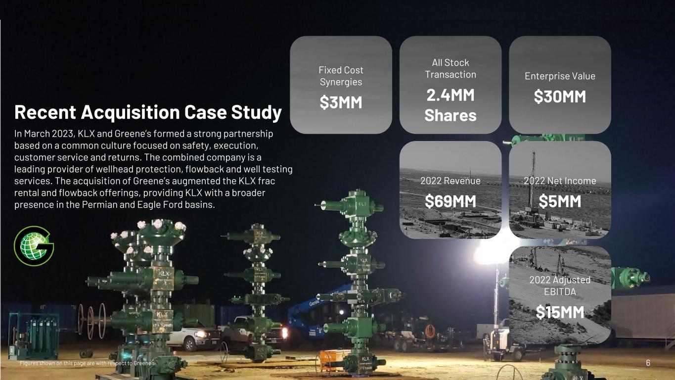 5  Provide market leading onsite job execution and safety  Drive margin enhancing utilization  Focus on pricing and cost structure to drive margins  Expand share of wallet with top customers  Continue to de-lever through a combination of EBITDA growth, free cash flow generation, debt reduction and consolidation  Expand integrated suite of proprietary technology and products  Expand certain product service lines ("PSLs") geographically  Continue to redeploy and expand our asset base in certain PSLs as returns warrant  Believe KLX is the partner of choice for consolidation  Maximize long-term shareholder value via synergistic consolidation  Greene’s acquisition is a blue- print by which KLX can structure win-win transactions, providing a conduit to liquidity for exceptional private oil service businesses Operational Excellence Augment Balance Sheet Strength Technology & Organic Growth Consolidation KLX Energy Services Strategic Focus