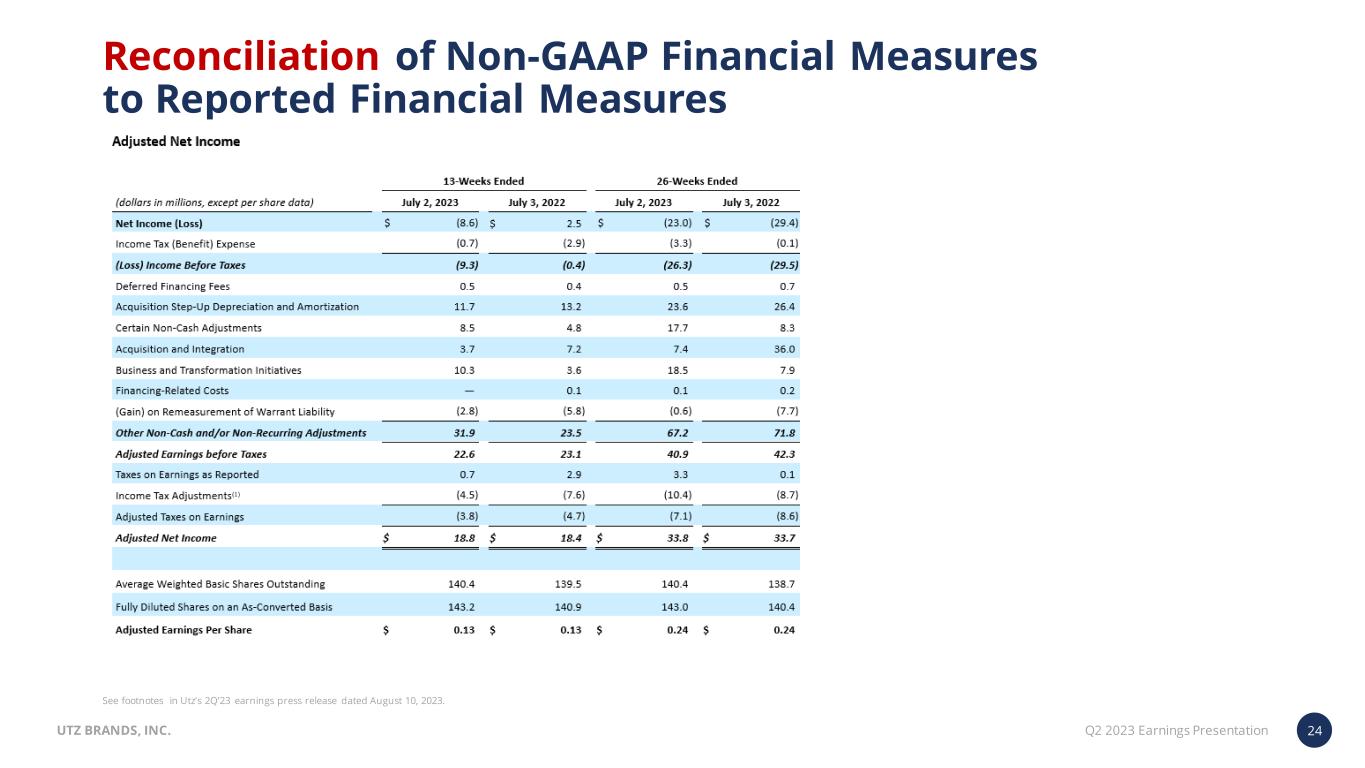 “Our second quarter results were consistent with our expectations as our momentum continued led by sustained strong demand across our advantaged portfolio of power brands,” said Howard Friedman, Chief Executive Officer of Utz. “Looking ahead to the remainder of the year, we are raising our full-year Adjusted EBITDA outlook as we execute against our key growth and operational strategies”.