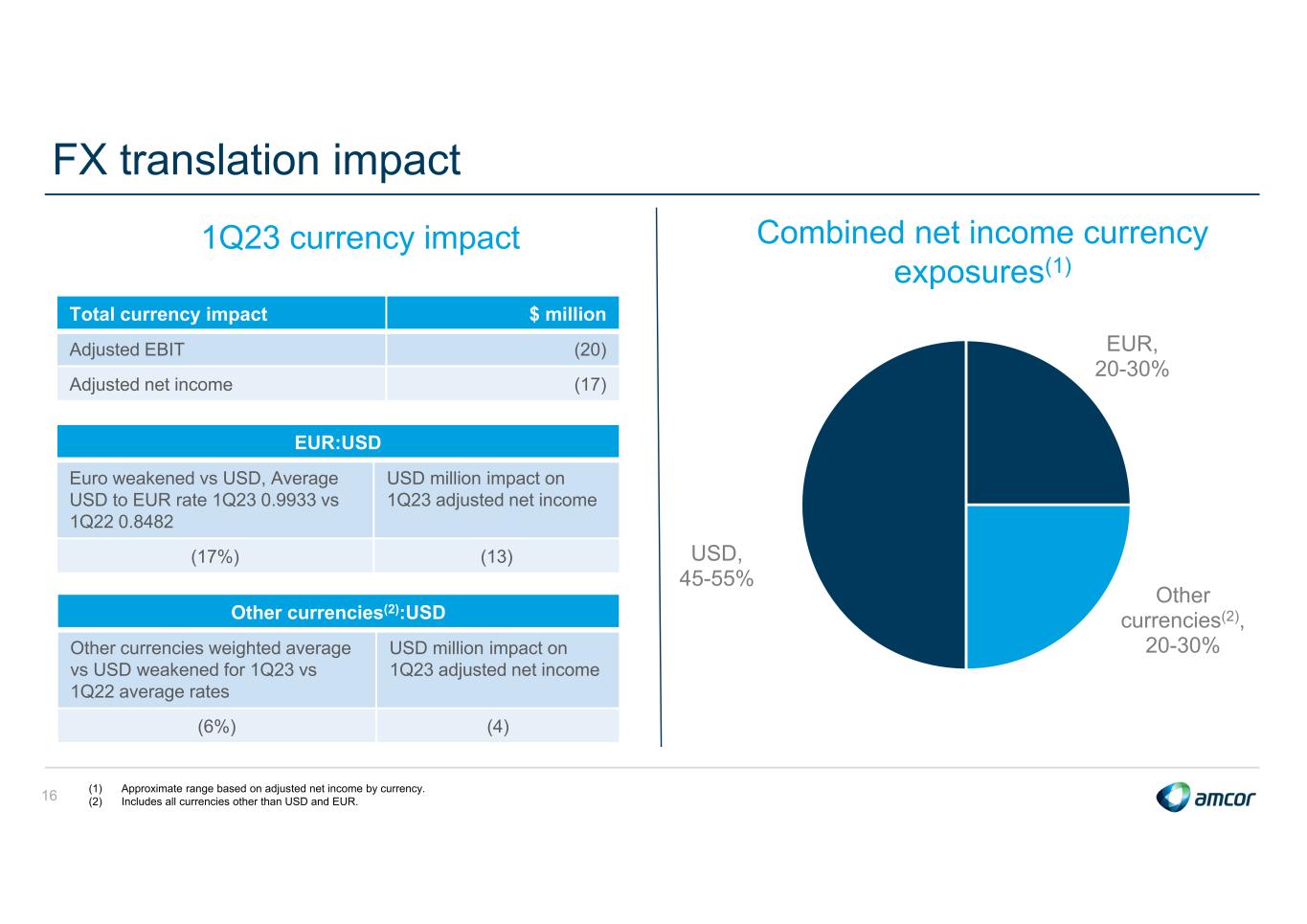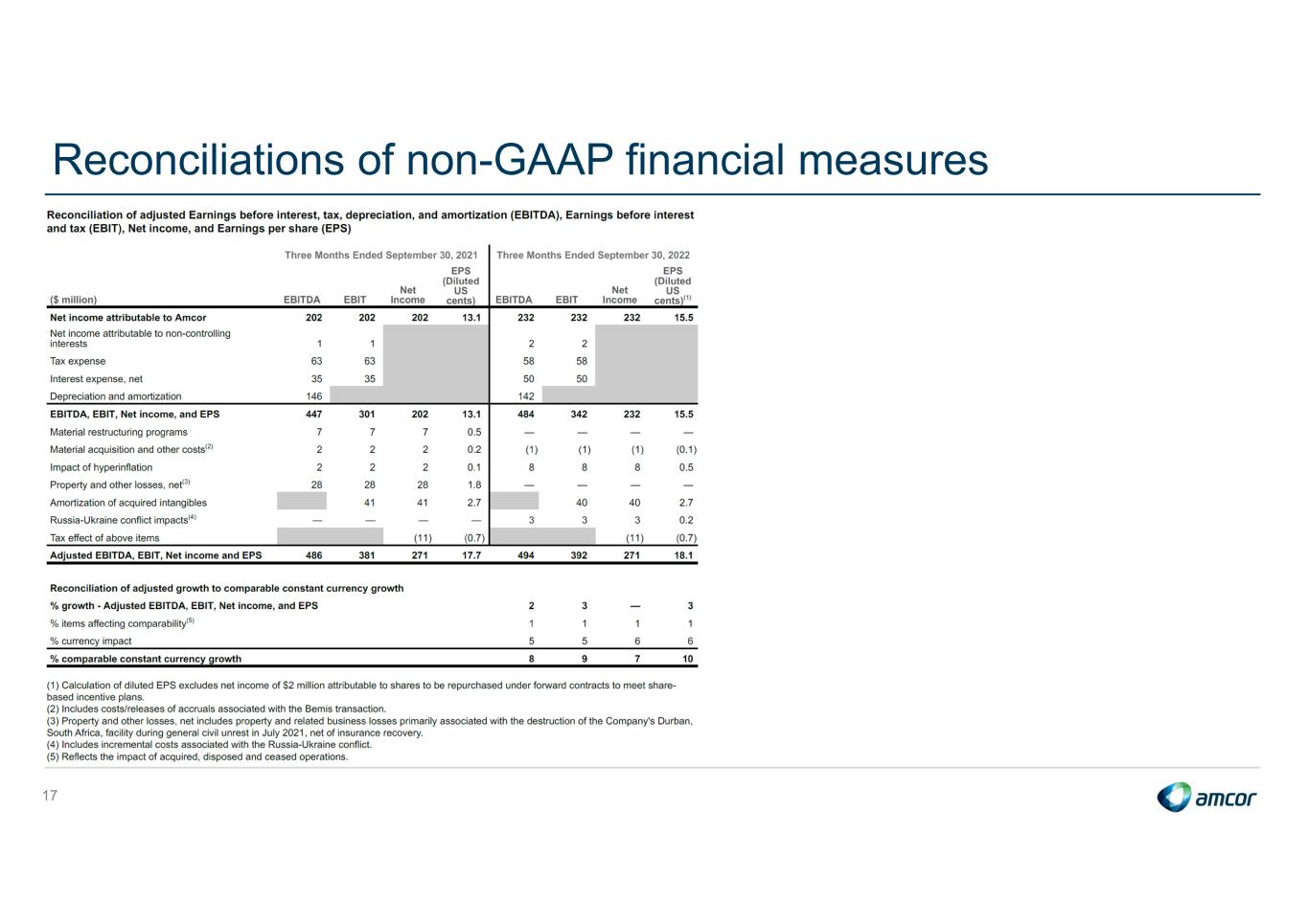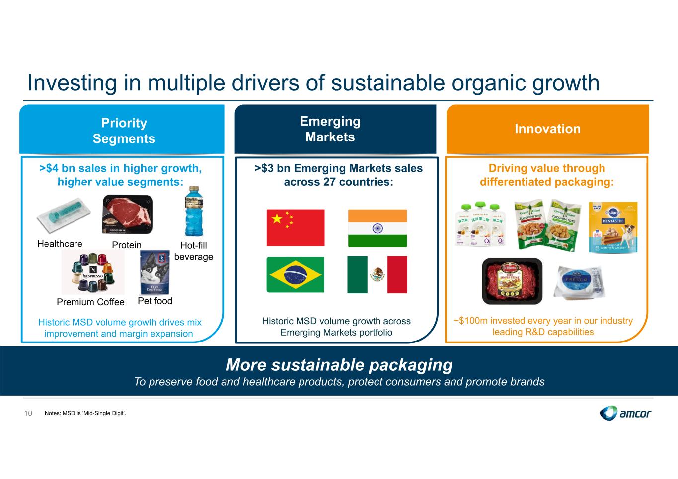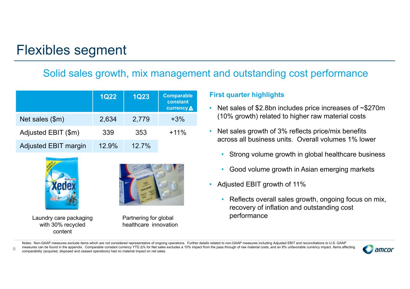 We remain focused on executing against our strategy for long term growth. Amcor consistently generates significant annual cash flow, providing substantial capacity to reinvest for future growth and to return cash to shareholders through an attractive and growing dividend and regular share repurchases. We believe the strength of our underlying business, proven execution capabilities and capital allocation framework position us well to deliver strong and consistent value for shareholders and supports our compelling investment case.”