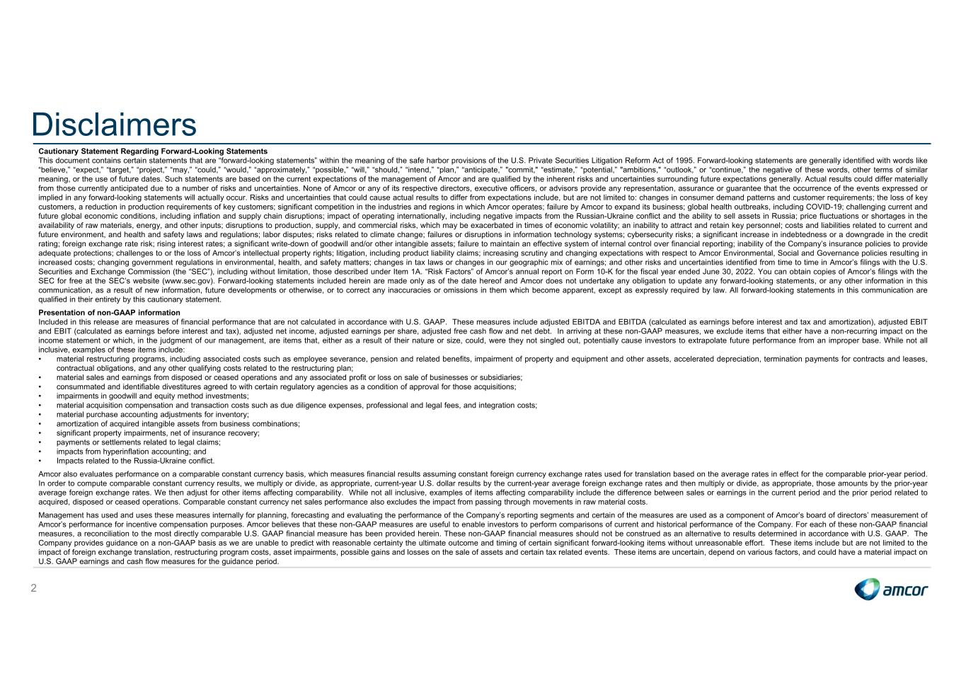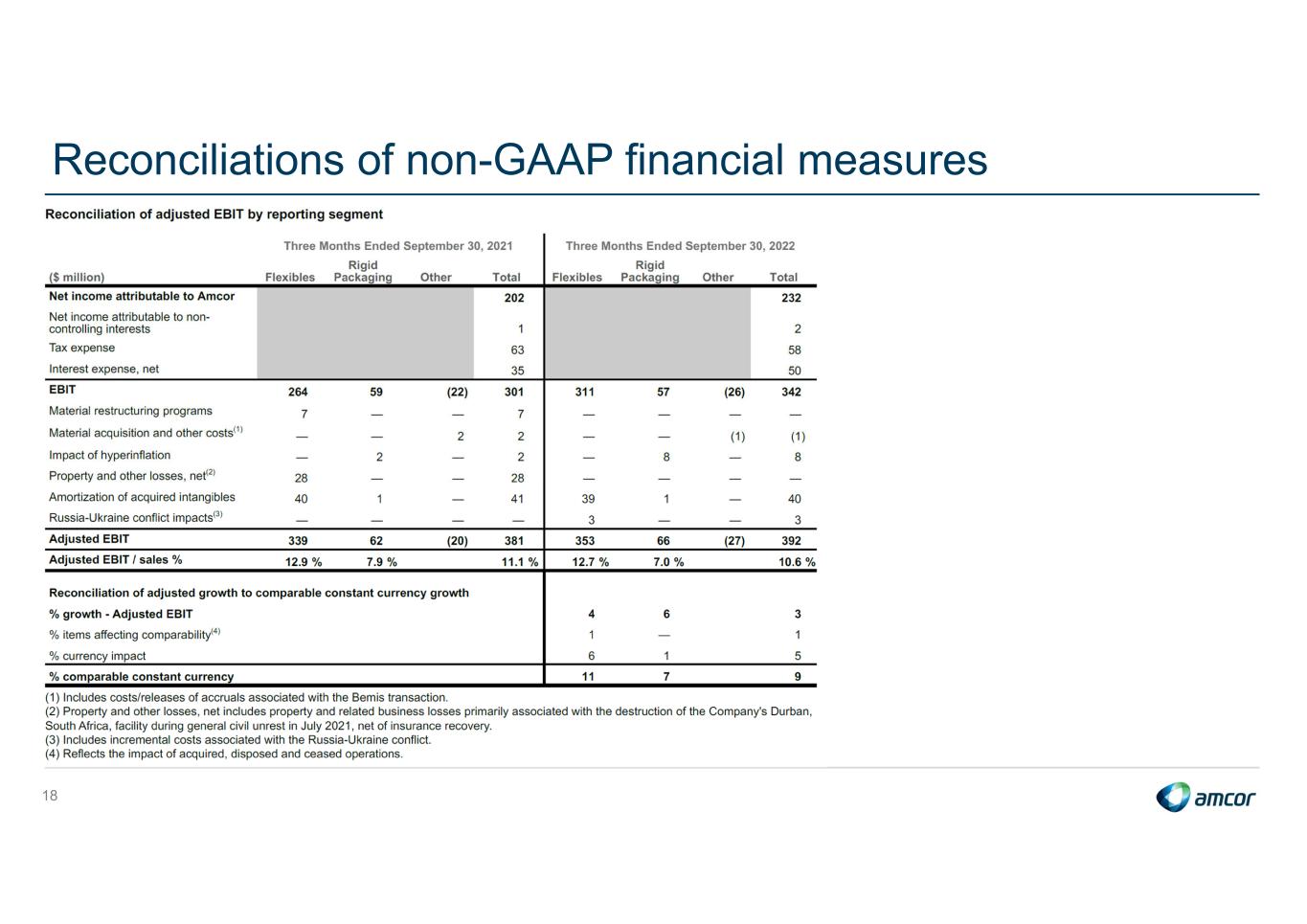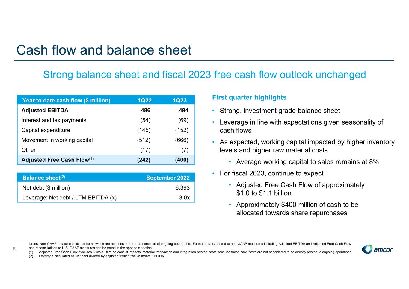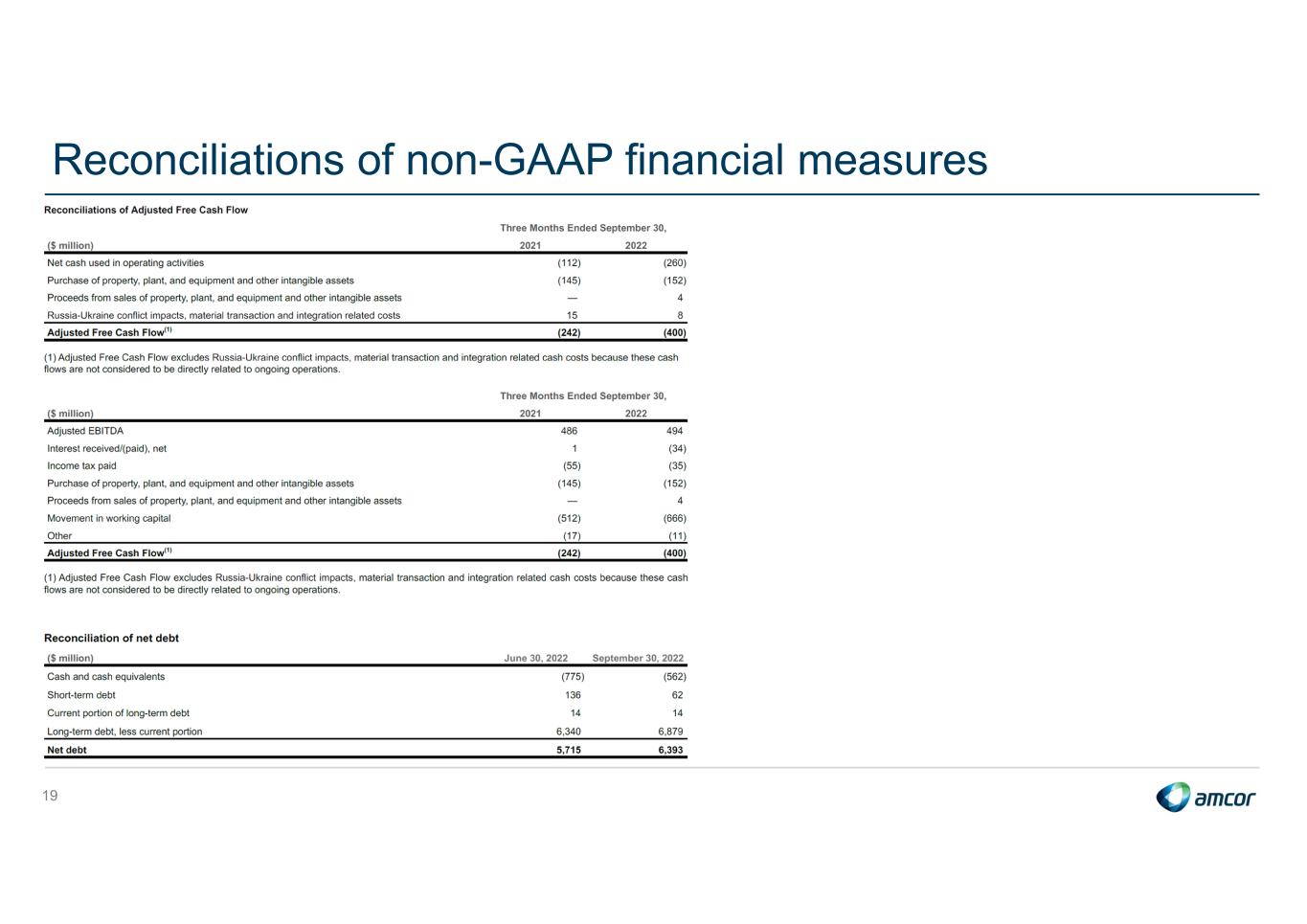 (1) Adjusted Free Cash Flow excludes Russia-Ukraine conflict impacts, material transaction and integration related cash costs because these cash flows are not considered to be directly related to ongoing operations.