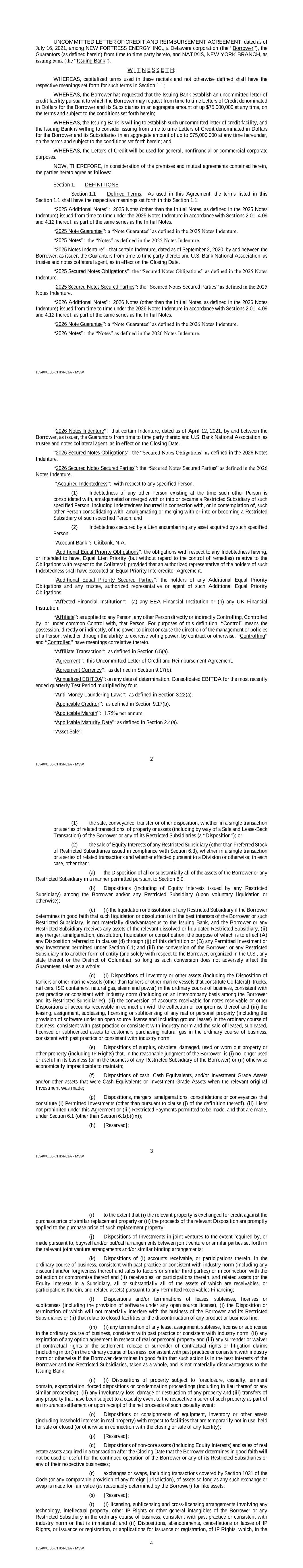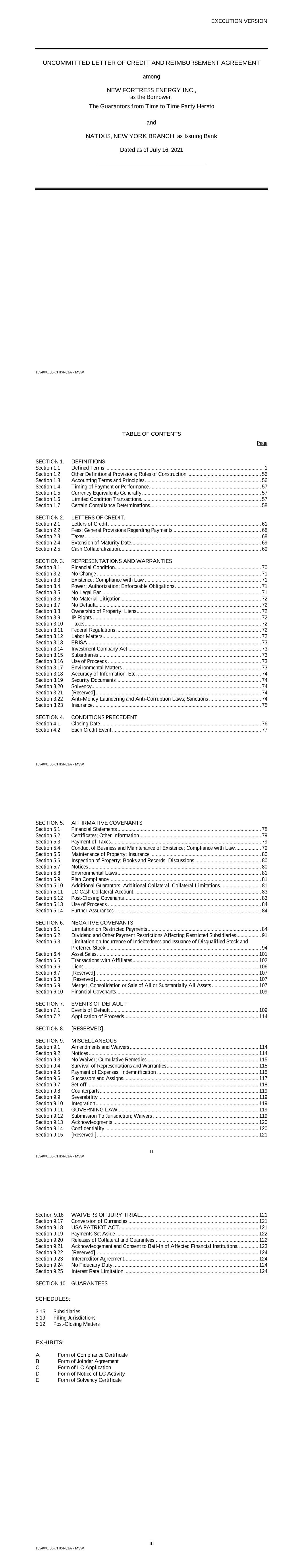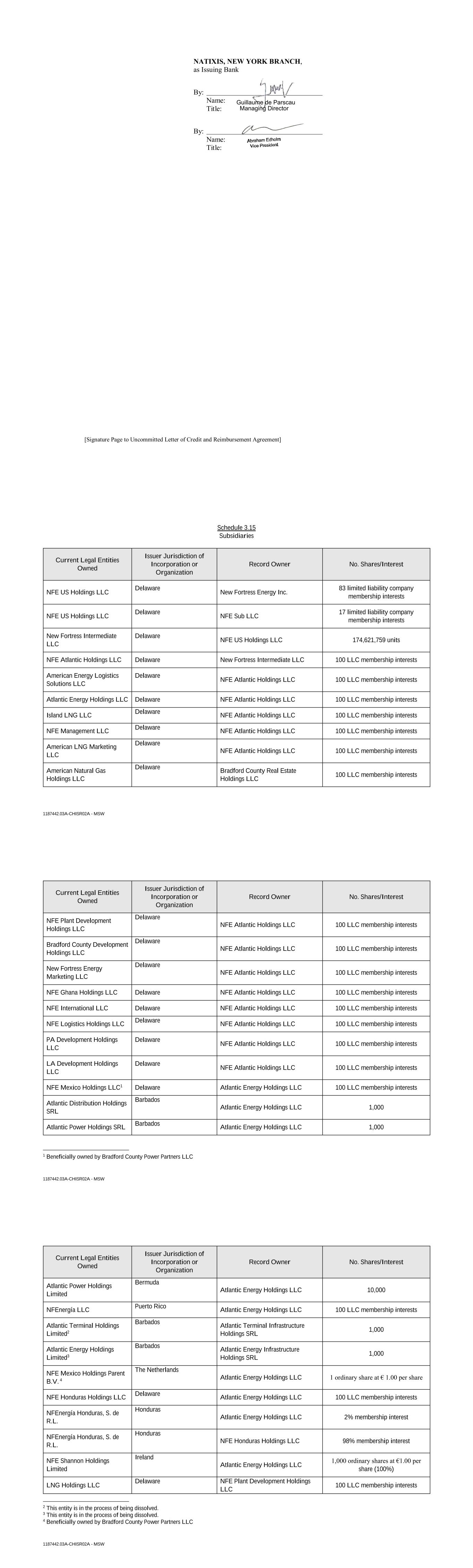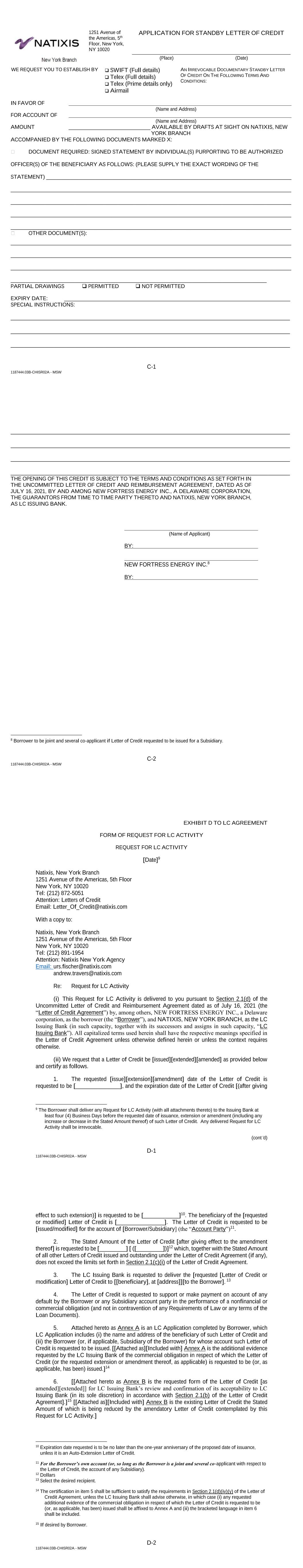 This FOURTH AMENDMENT TO CREDIT AGREEMENT (this “Amendment”), dated as of March 3, 2025, is among NEW FORTRESS ENERGY INC., a Delaware corporation (the “Borrower”), each of the undersigned guarantors (the “Guarantors”), the Lenders party hereto and MORGAN STANLEY SENIOR FUNDING, INC., as administrative agent for the Lenders (in such capacity, together with its successors and assigns in such capacity, the “Administrative Agent”) and as collateral agent for the Secured Parties (in such capacity, together with its successors and assigns in such capacity, the “Collateral Agent”).