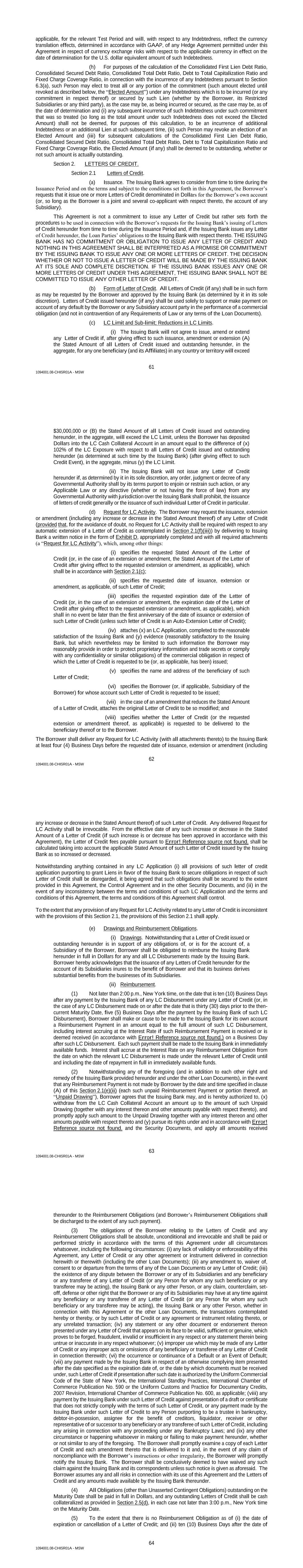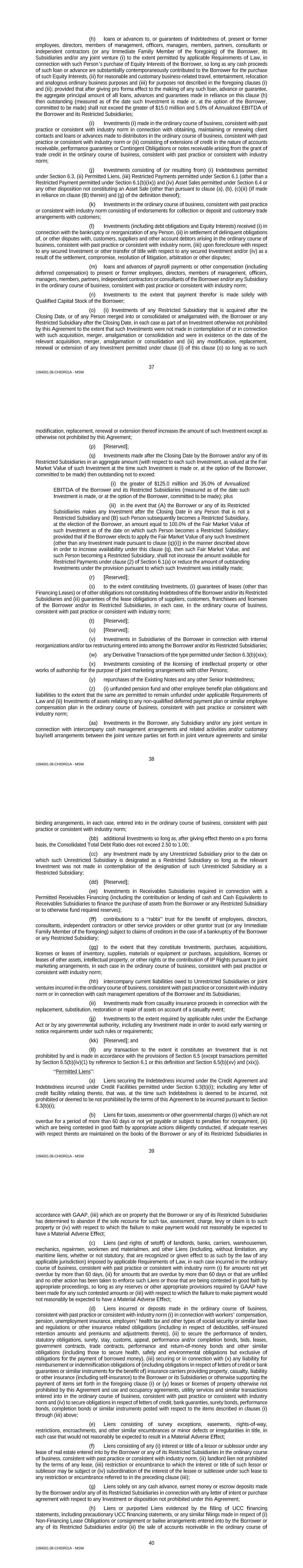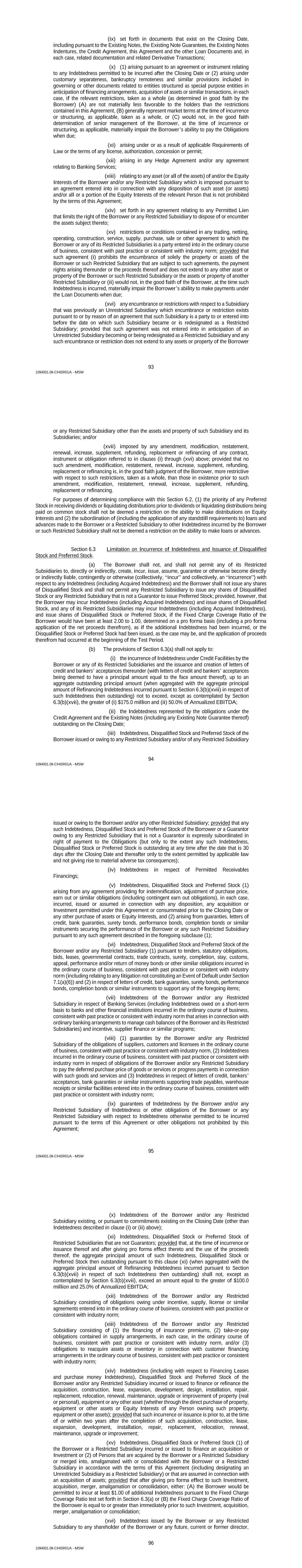 (ii)The Borrower and each Guarantor hereby: (x) agrees that from and after the Fourth Amendment Effective Date, each reference to the Credit Agreement in the Loan Documents shall be deemed to be a reference to the Existing Credit Agreement, as amended by this Amendment; (y) acknowledges and agrees that nothing herein contained shall be construed as a substitution or novation of the obligations outstanding under the Existing Credit Agreement or any other Loan Document or instruments securing the same, which shall remain in full force and effect as modified hereby or by instruments executed concurrently herewith and (z) represents and warrants to the Agents and the Lenders that as of the date hereof, after giving effect to the terms of this Amendment: (i) all representations and warranties contained in this Amendment, the Credit Agreement and in the other Loan Documents are true and correct in all material respects, except to the extent such representations and warranties specifically relate to an earlier date, in which case such representations and warranties shall have been true and correct in all material respects on and as of such earlier date; provided that, in each case, such materiality qualifier shall not be applicable to any representations and warranties that already are qualified or modified by materiality in the text hereof or thereof and (ii) no event has occurred and is continuing that would constitute an Event of Default or a Default. Without limiting the generality of the foregoing, the Collateral Agent or any Lender nor any other action or inaction on behalf of the Administrative Agent, the Collateral Agent or any Lender, shall constitute or be deemed to constitute a consent to, or waiver of, any other action or inaction of the Borrower or any of the other Loan Parties which results (or would result) in a Default or Event of Default under the Credit Agreement or any other Loan Document, nor shall anything contained herein constitute a course of conduct or dealing among the parties; (ii) the Administrative Agent, the Collateral Agent and the Lenders shall have no obligation to grant any future waivers, consents or amendments with respect to the Credit Agreement or any other Loan Document; and (iii) the parties hereto agree that nothing contained herein shall waive, affect or diminish any right of the Administrative Agent, the Collateral Agent and the Lenders to hereafter demand strict compliance with the Credit Agreement and the other Loan Documents.