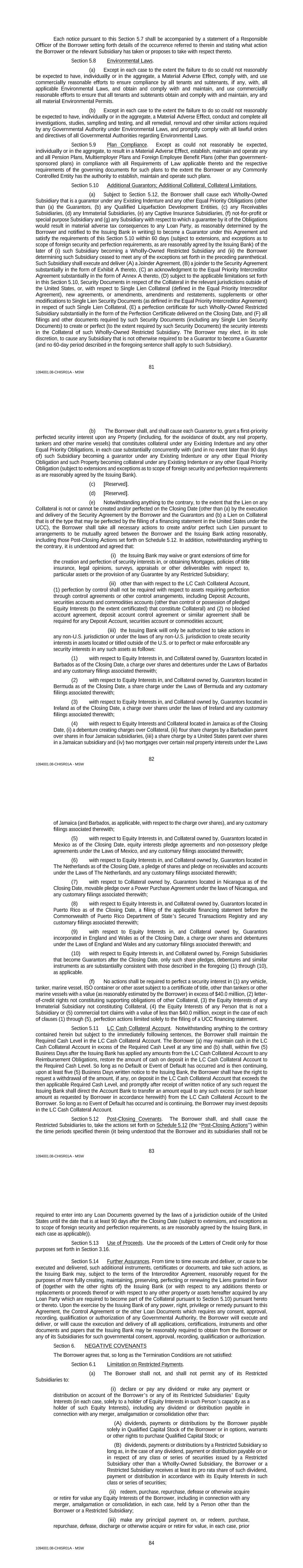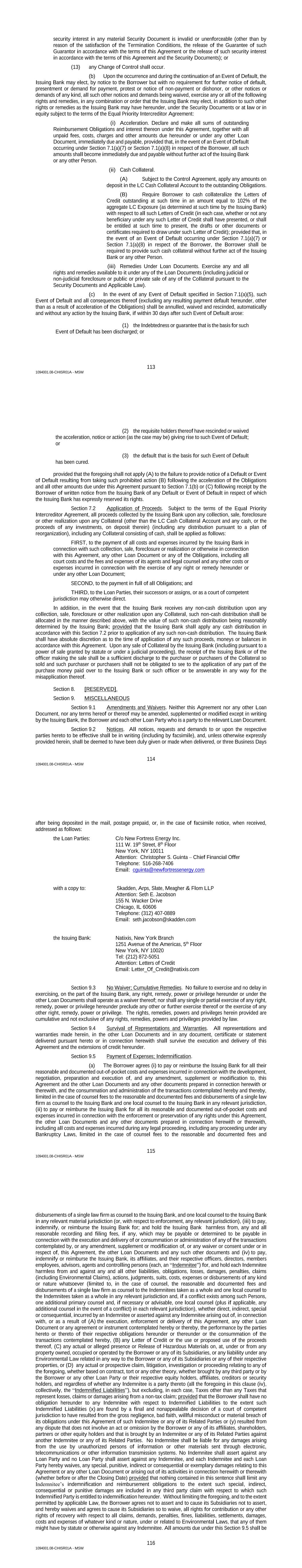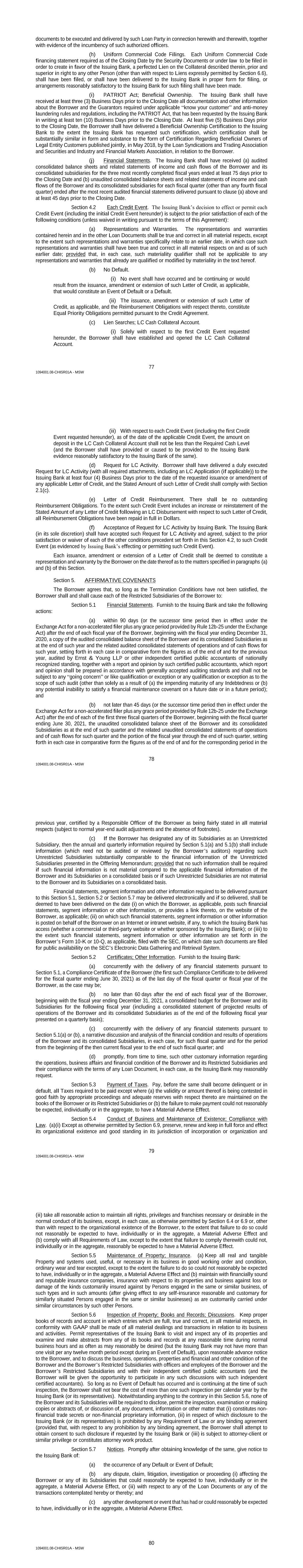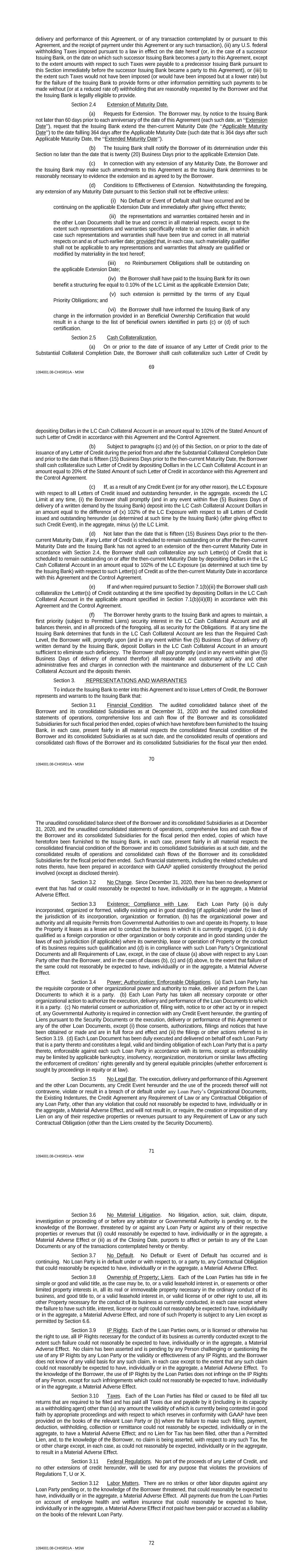 (ii)The Borrower and each Guarantor hereby: (x) agrees that from and after the Fourth Amendment Effective Date, each reference to the Credit Agreement in the Loan Documents shall be deemed to be a reference to the Existing Credit Agreement, as amended by this Amendment; (y) acknowledges and agrees that nothing herein contained shall be construed as a substitution or novation of the obligations outstanding under the Existing Credit Agreement or any other Loan Document or instruments securing the same, which shall remain in full force and effect as modified hereby or by instruments executed concurrently herewith and (z) represents and warrants to the Agents and the Lenders that as of the date hereof, after giving effect to the terms of this Amendment: (i) all representations and warranties contained in this Amendment, the Credit Agreement and in the other Loan Documents are true and correct in all material respects, except to the extent such representations and warranties specifically relate to an earlier date, in which case such representations and warranties shall have been true and correct in all material respects on and as of such earlier date; provided that, in each case, such materiality qualifier shall not be applicable to any representations and warranties that already are qualified or modified by materiality in the text hereof or thereof and (ii) no event has occurred and is continuing that would constitute an Event of Default or a Default. Without limiting the generality of the foregoing, the Collateral Agent or any Lender nor any other action or inaction on behalf of the Administrative Agent, the Collateral Agent or any Lender, shall constitute or be deemed to constitute a consent to, or waiver of, any other action or inaction of the Borrower or any of the other Loan Parties which results (or would result) in a Default or Event of Default under the Credit Agreement or any other Loan Document, nor shall anything contained herein constitute a course of conduct or dealing among the parties; (ii) the Administrative Agent, the Collateral Agent and the Lenders shall have no obligation to grant any future waivers, consents or amendments with respect to the Credit Agreement or any other Loan Document; and (iii) the parties hereto agree that nothing contained herein shall waive, affect or diminish any right of the Administrative Agent, the Collateral Agent and the Lenders to hereafter demand strict compliance with the Credit Agreement and the other Loan Documents.
