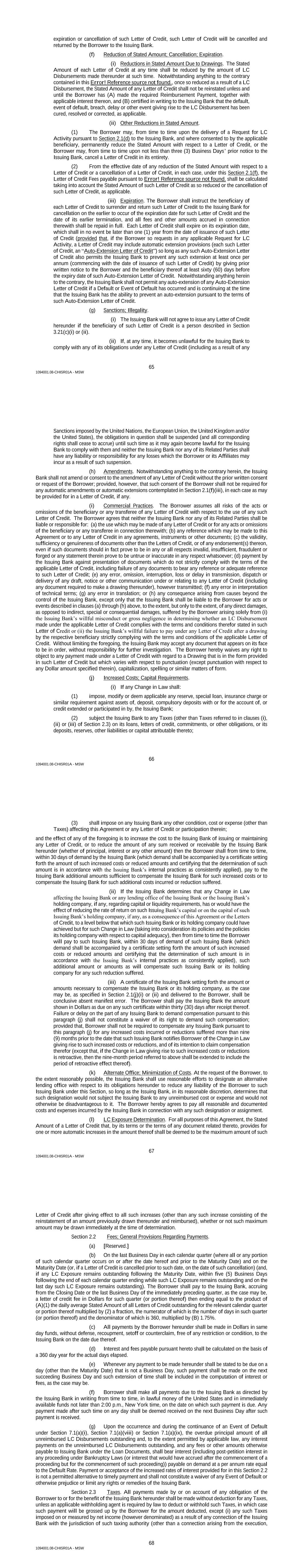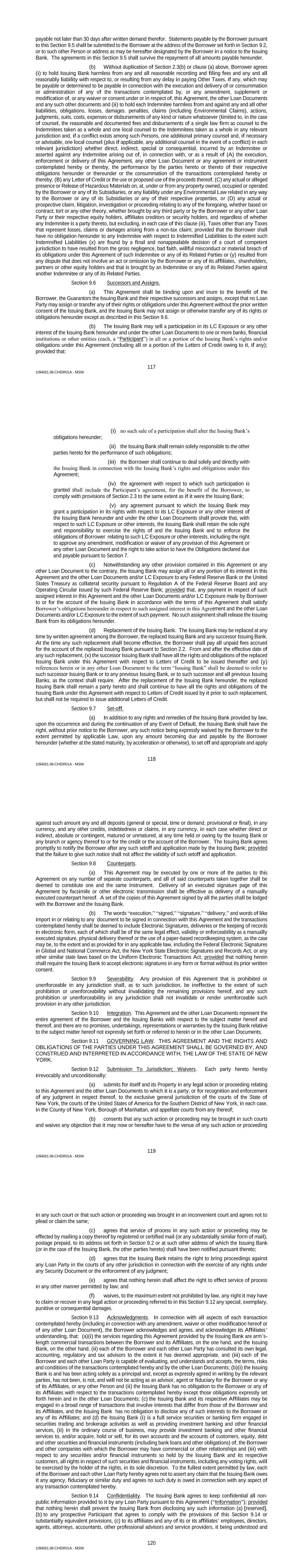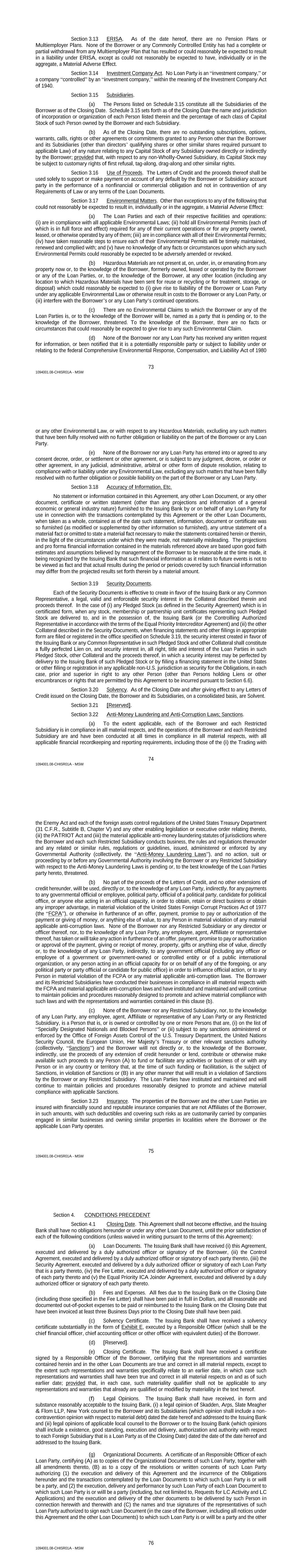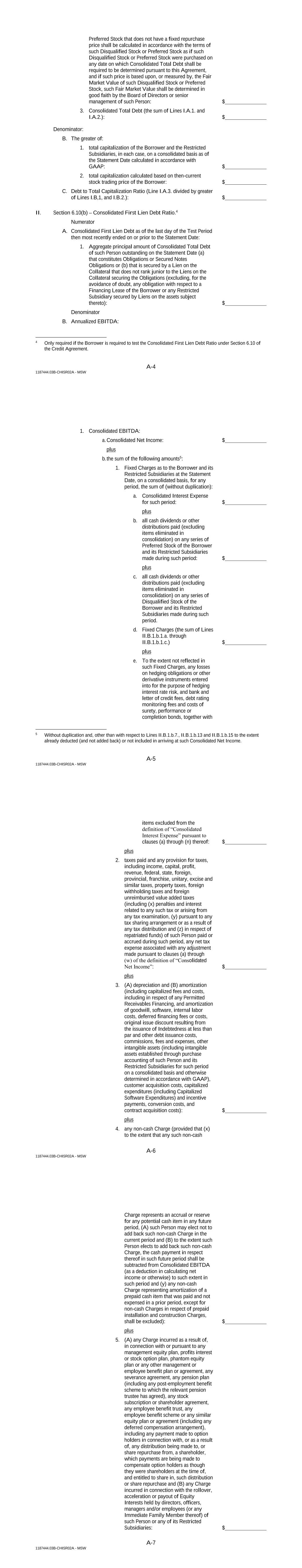 C.As of the date hereof, both before and after giving effect to this Amendment, the Total Outstandings are $349,999,563.37. After the effectiveness of this Amendment, the unused Commitments under the Credit Agreement will be $0.