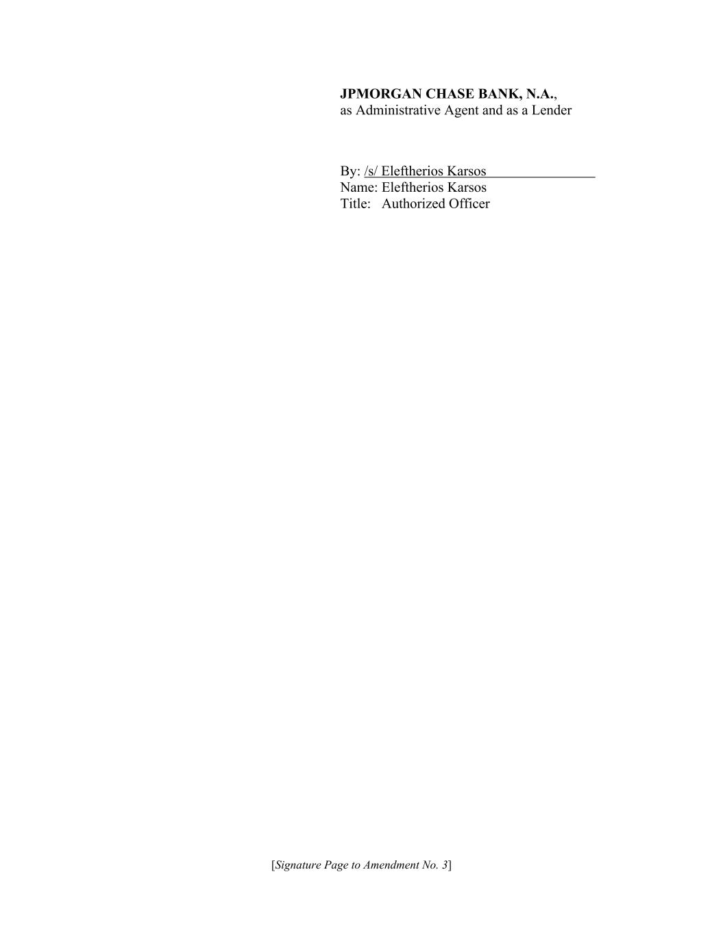 [Signature Page to Amendment No. 3] JPMORGAN CHASE BANK, N.A., as Administrative Agent and as a Lender By: /s/ Eleftherios Karsos Name: Eleftherios Karsos Title: Authorized Officer