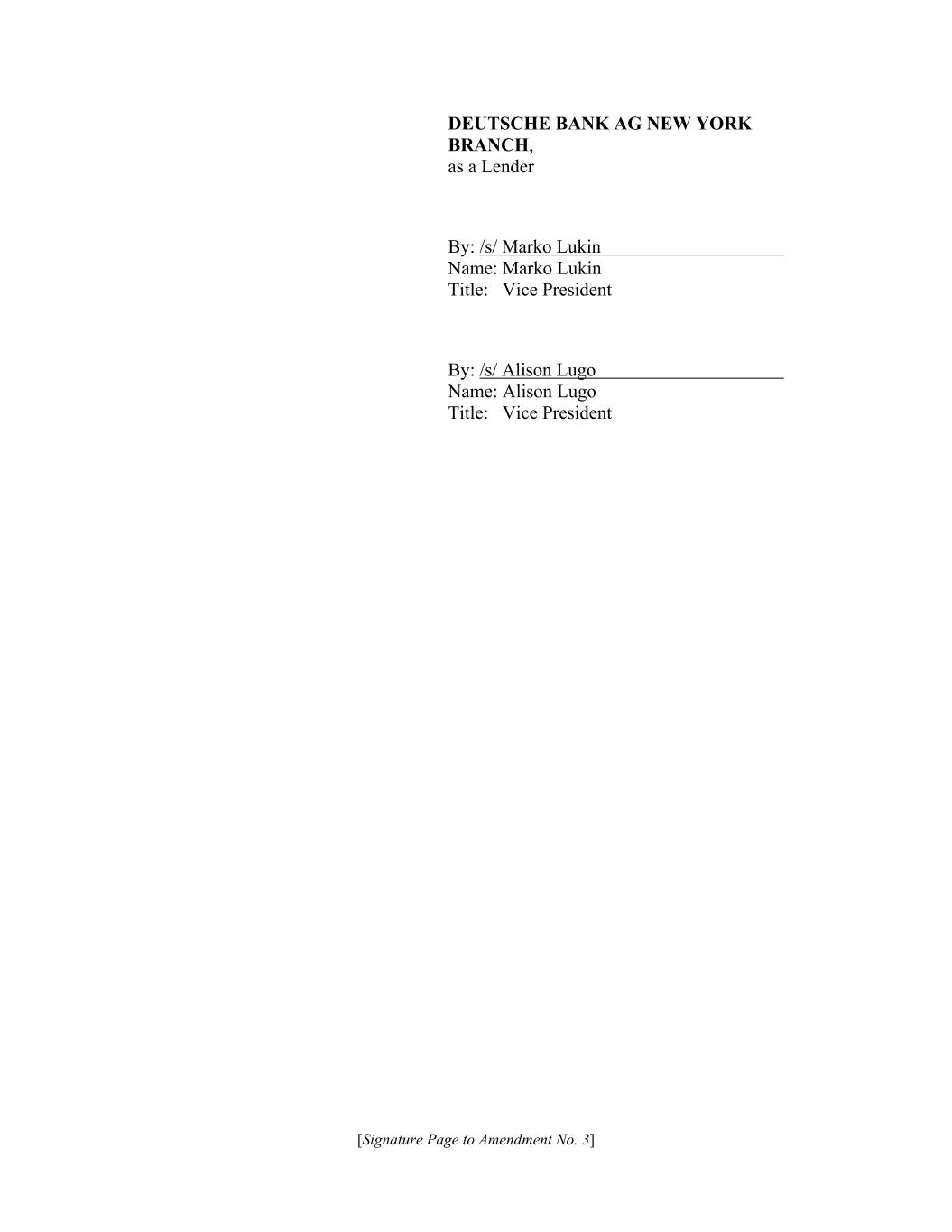 [Signature Page to Amendment No. 3] DEUTSCHE BANK AG NEW YORK BRANCH, as a Lender By: /s/ Marko Lukin Name: Marko Lukin Title: Vice President By: /s/ Alison Lugo Name: Alison Lugo Title: Vice President