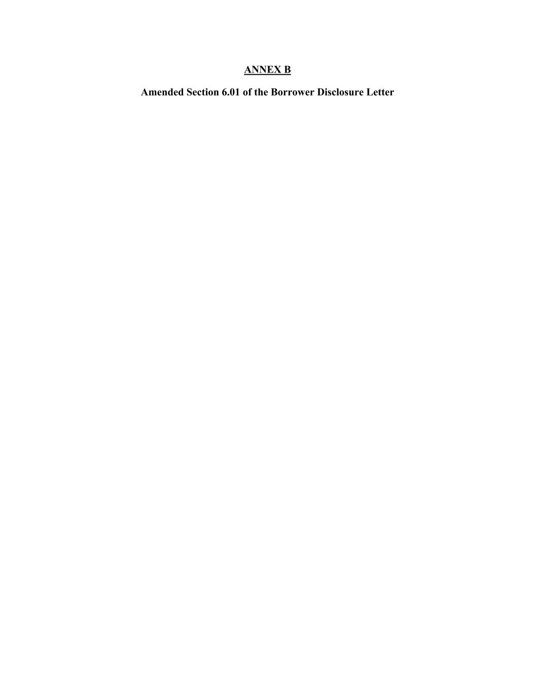 ANNEX B Amended Section 6.01 of the Borrower Disclosure Letter