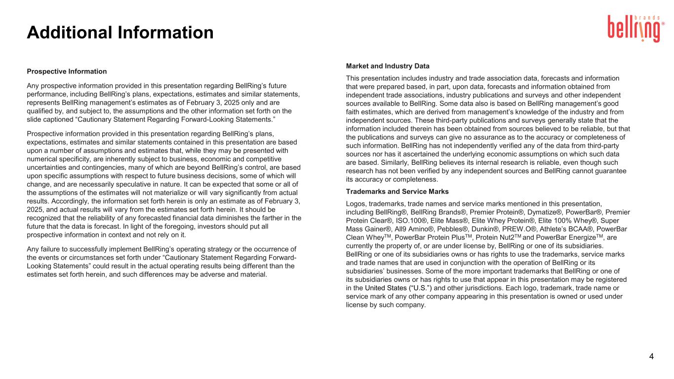 BellRingは、調整後EBITDAガイダンスを非GAAP基準でのみ提供しており、将来の調整後EBITDAの非GAAPガイダンス指標と、最も直接的に比較可能なGAAP指標との調整表を提供していません。これは、そのような調整表の作成に必要な特定の金額を予測し、定量化することが本質的に困難であるためです。BellRingの非GAAP指標に関する追加情報については、"非GAAP指標の使用 "に記載された関連説明を参照してください。
