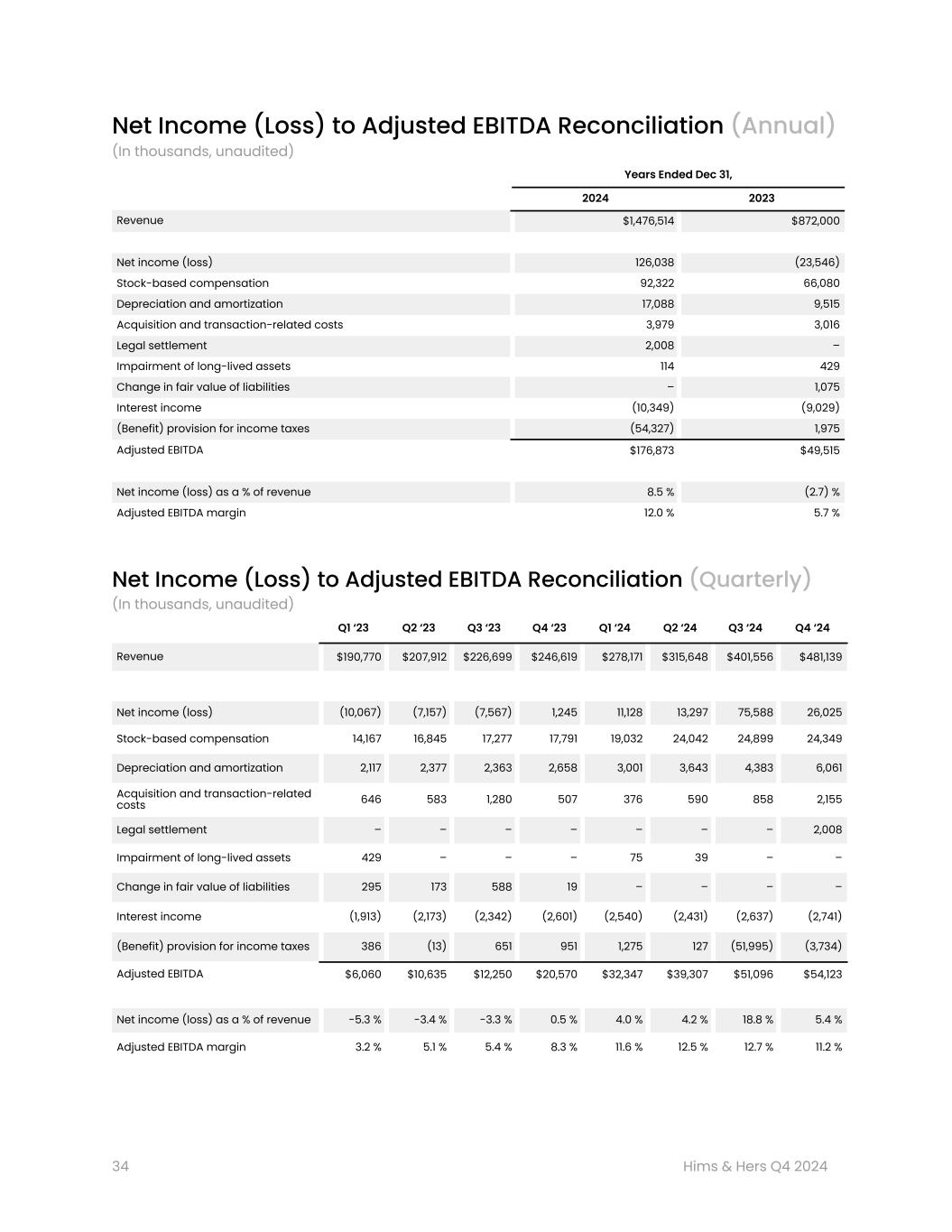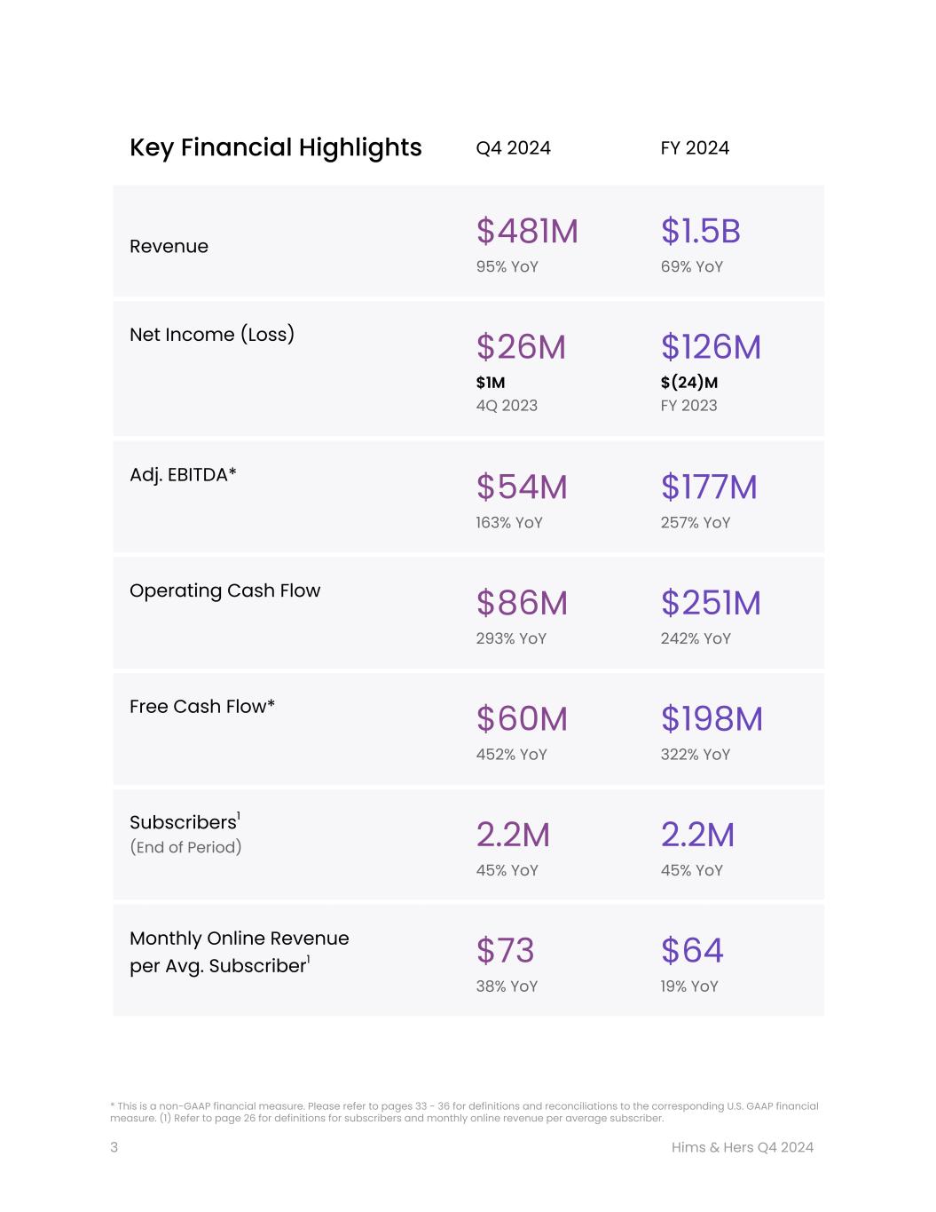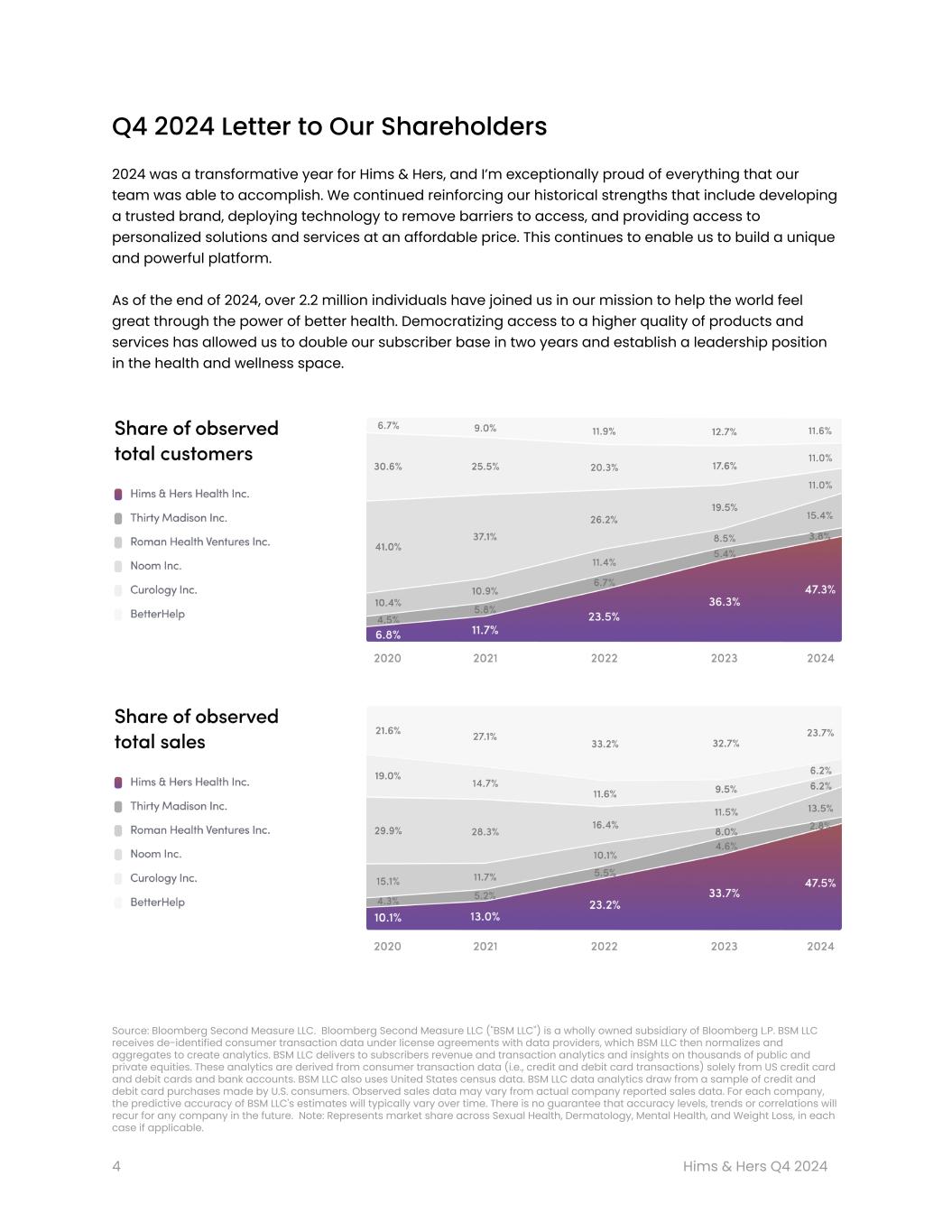サンフランシスコ、2025年2月24日 - 健康・ウェルネス・プラットフォームのリーディングカンパニーであるヒムズ&ハーズ・ヘルス社(以下「ヒムズ&ハーズ」または「当社」、NYSE: HIMS)は本日、investors.hims.comに掲載されている株主通信において、2024年12月31日を期末とする第4四半期および通年の業績を発表した。