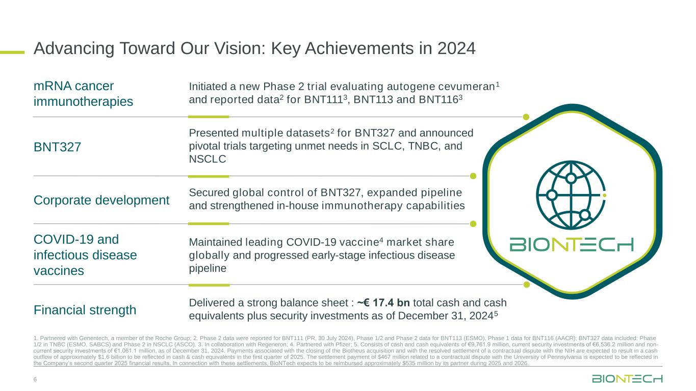 •Data from the ongoing global Phase 2 dose optimization clinical trials evaluating BNT327 in combination with chemotherapy in first-line small cell lung cancer (“SCLC”) (BNT327-01, NCT06449209) and TNBC (BNT327-02, NCT06449222) are planned to be published in 2025.