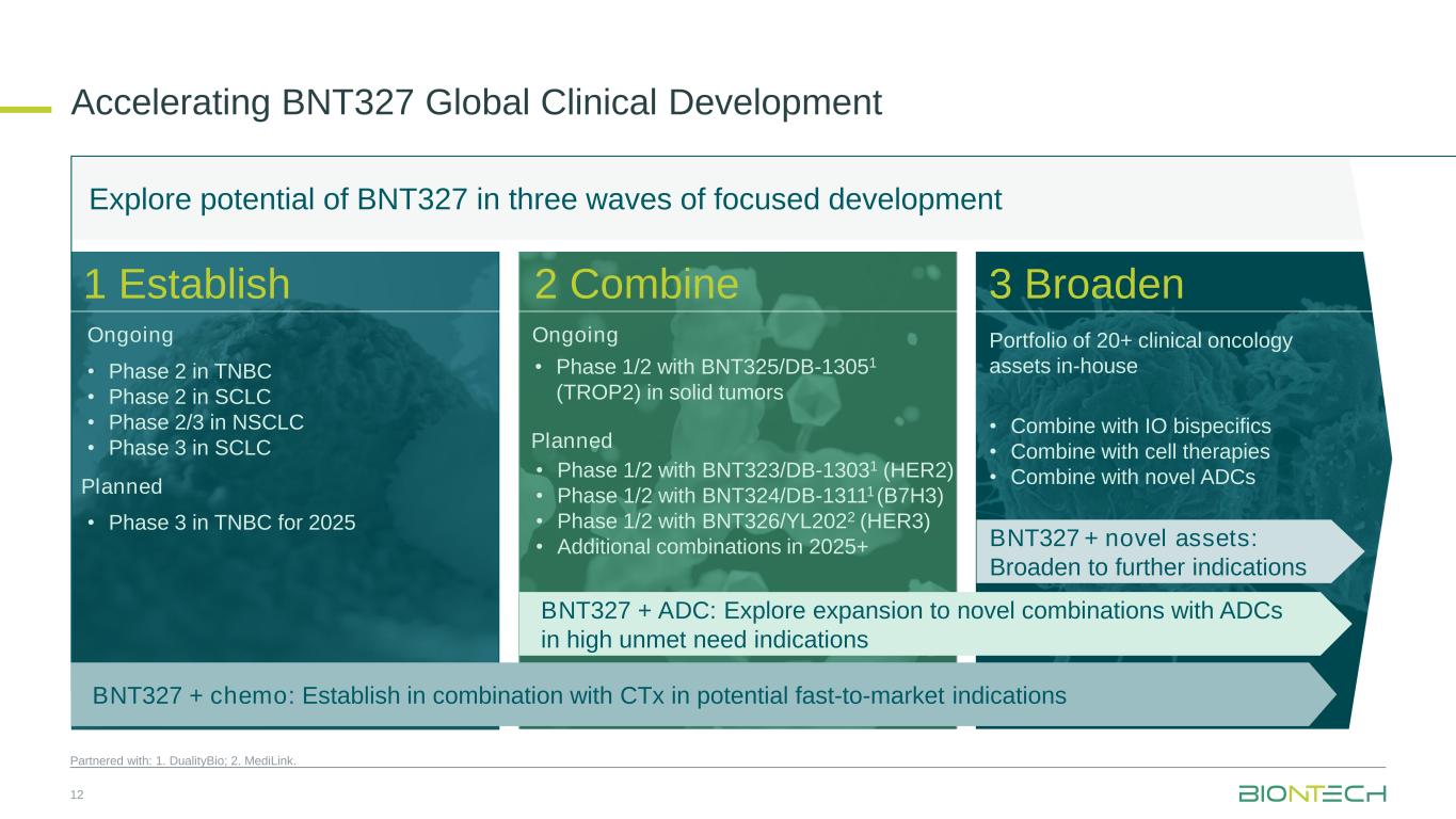 •A global randomized Phase 3 clinical trial evaluating BNT327 in first-line TNBC is on track to start in 2025.